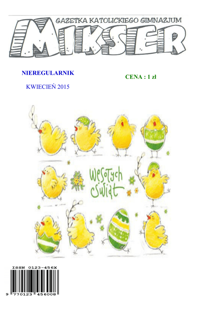 NIźRźżULARNIK KWIźCIź 2Ńń5 CźNA Ś ń zł SPIS TRź CI INTROŹUKCJA WIźLKANOCNź SYMBOLź Z YCIA SZKOŁY—WYWIAŹ źżZAMINY WYNIKI KONKURSÓW KURATORYJNYCH ZRÓB TO SAM NAWRACAMY NA POLSK MUZYK WIźRZBA PISANA OŹJźCHANA ŻźLIźTON OLABOżA STRźŻA WYOBRA NI UBAW PO PACHY STR. STR. STR. STR. STR. STR. STR. STR. STR. STR. STR. STR. STR. 3 4 5-7 8 8-9 ńŃ-ńń ń2-ń3 ń4-ń6 ń7-ń8 ń8-2Ń 2ń-23 24 STOPKA REDAKCYJNA Opiekun: p. Katarzyna Ługiewicz Redaktor naczelna: Ola Kądziołka Skład: Kajetan Wojciechowski Reklama oraz kolportaż: Ala Duda i Karolina Rybak Zespół: Wszyscy wymienieni powyżej oraz: Natalia Sadowska, Maria Kuśmirczuk, Magda Szymankowska, Ula Przewoźna, Ala Duda, Karolina Rybak, Natalia Godlewska, Maria Lewińska, Dominika Kunicka. Grafika : www.google.pl Adres e-mail: [email protected] Strona internetowa: www.katgim.pl 2 MIKSźR INTROŹUKCJA << Jeszcze niedawno rozpoczynali my Wielki Post, który zaraz si ko czy. A wraz z jego zako czeniem przychodzi… WielkanocĄ To czas pełen rado ci i szcz cia. W rodzinnym gronie wi tujemy to, co jest w naszej wierze najwa niejszeZmartwychwstanie. Z okazji zbli aj cych si wi t, w imieniu całej Redakcji chciałabym Wam yczyć prawdziwie prze ytego Zmartwychwstania, pokoju w sercach i rado ci ka dego dnia, bo wła nie jedynie dzi ki temu mo na poradzić sobie z wszelkimi trudno ciami. W ród ł ki wilgotnej od porannej rosy, Źroga, ktoór co wi to szli ludzie ze piewk , Idzie sobie Pan Jezus, wpółnagi i bosy Z wielkanocn w przebitej dłoni chor giewk . Naprzeciw idzie chłopka. Ma kosy złociste, Łowicka jej spódniczka i pi kna zapaska. Poznała Zbawiciela z wi tego obrazka, Upadła na kolana i krzykn łaŚ ąChrysteĄą. Bije głow o ziemi z serdeczn rozpacz , A Chrystus si pochylił nad kl cz cym ciałem I rzeknieŚ ąPowiedz ludziom, niech wi cej nie płacz , Źwa dni le ałem w grobie. I dzi zmartwychwstałem.ą Jan Lechoń MIKSźR Ola 3 >> WIźLKANOCNź SYMBOLź żdy pomy limy o Wielkanocy, od razu mamy przed oczami jajka, palemki, zaj czki itd. Jednak dlaczego akurat te przedmioty? To nie jest tylko przypadek lub skojarzenie z wiosn . Niektóre z nich maj znaczenie symboliczneŚ JAJKO- symbol nowego ycia, odrodzenia, pomy lno ci, zwyci stwa dobra nad złem. Źzielenie si nim przy stole wielkanocnym symbolizuje przekazywanie dalej dobra i miło ci. Malowanie jajek jest radosnym zwyczajem, które swoimi korzeniami si ga… a do staro ytno ciĄ ZAJ C- jest zarówno znakiem przemijania, jak i symbolem zmartwychwstania, triumfu ycia nad mierci , dzi ki swej niezwykłej płodno ci PALMA- Pami tka przyjazdu Jezusa. żdy Jezus wjechał do Jerozolimy, ludzie witali żo gał zkami wierzbowymi. Tradycyjnie wpl tuje si w ni mn. Bukszpan, cis, widłak. BARANźK- w dawnych czasach baranek był zwierz ciem ofiarnym. Cz sto zdarza nam si mówić na Jezusa „Baranek Bo y”, dlatego podczas wi t wielkanocnych cukrowy baranek symbolizuje Jezusa. Karo ♦ „M do onyŚ -Podaj mi rubokr t. -żwiazdkowy? -Nie, wielkanocny” 4 MIKSźR Z YCIA SZKOŁY<< WYWIAŹ POWRÓT DO KORZENI… Rozmowa z p. Anną Stelmach — nauczycielką matematyki w Katolickim Gimnazjum Ula i MagdaŚ W jakich latach uczyła Pani w Katolickim żimnazjum? p. AnnaŚ Moja przygoda rozpoczęła się z tą szkołą we wrześniu 2003r i trwała nieprzerwanie do października 2008 r. Ula i MagdaŚ Co było powodem Pani odej cia na te kilka lat? p. AnnaŚ W październiku 2008r, moje życie zupełnie się zmieniło. Zostałam mamą małego, cudownego Michasia i dla niego porzuciłam pracę i moich uczniów. Trzy lata później dołączyła do rodzinki urocza Hanusia i nadal z wielką radością mogłam się spełniać jako mama. To moja ulubiona i najważniejsza praca. Ula i MagdaŚ Czy od pocz tku chciała Pani uczyć matematyki? p. AnnaŚ Nauczycielką chciałam być zawsze. Początkowo myślałam, że zostanę przedszkolanką, bo uwielbiałam młodsze dzieci i zabawy z nimi. W szkole średniej miałam świetną matematyczkę i świetną polonistkę, więc miałam spory dylemat, co wybrać: matematyk, czy polonistykę. W końcu wybrałam matematykę, bo miałam łatwość w rozumieniu jej i tłumaczenia innym. Pomyślałam, że byłoby super służyć innym, pomagając przejść przez zawiłe ścieżki matematyki. Do dziś największą radość sprawia mi iskra zrozumienia w oczach uczniów. Zwłaszcza tych, którzy często myśleli, że z matmy to już nic się nie nauczą. Ula i MagdaŚ Czy uczyła Pani jakiego innego przedmiotu? p. AnnaŚ Tak, ponad 10 lat temu uczyłam informatyki w pewnym liceum, ale matematyka bardziej mi odpowiadała. Ula i MagdaŚ Uczy Pani w jakiej szkole podstawowej albo liceum? p. AnnaŚ Teraz nie. MIKSźR 5 >>Z YCIA SZKOŁY WYWIAŹ Ula i MagdaŚ Jak Pani wspomina szkoł sprzed kilku lat? p. AnnaŚ Kilka lat temu nasza szkoła miała o wiele skromniejsze zaplecze. Pod tym względem bardzo się zmieniło. Jeśli chodzi o kadrę pedagogiczną, to zawsze pracowali tu świetni ludzie i tak jest dzisiaj. We wrześniu z radością stwierdziłam, że większość nauczycieli nie zmieniła się. Ciepło i miło wspominam moich dawnych uczniów, których teraz spotykam już jako dorosłych ludzi. Pamiętam, jak woziliśmy uczniów na w-f do seminarium duchownego, a potem przez cały rok szkolny sala gimnastyczna była w budowie. Pamiętam, jak obecna sala była jeszcze kaplicą i tam na szarym betonie odbywały się wszystkie msze i uroczystości szkolne. Lubię naszą szkołę i trochę tęskniłam za nią na urlopie wychowawczym. Ula i MagdaŚ Jakie wra enia wzbudziła w Pani szkoła, gdy zacz ła Pani ponownie uczyć? p. AnnaŚ Poczułam się w niej jak ktoś nowy i trochę obco. Z każdym dniem przekonywałam się, jak bardzo dzisiejsi uczniowie różnią się od tych sprzed kilku lat. Zaskakuje mnie, gdy niektórzy przechodzą koło nauczyciela jak koło powietrza, bez uśmiechu, bez „ dzień dobry!”W ogóle mam wrażenie, że