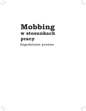 Mobbing w stosunkach pracy Zagadnienia prawne Książkę tę poświęcam pamięci mojej ciotki Heleny B., bestialsko zamordowanej w wieku 18 lat przez niemieckich okupantów w pamiętnym dniu 5 sierpnia 1944 roku, w 65. rocznicę Jej męczeńskiej śmierci Helena Szewczyk Mobbing w stosunkach pracy Zagadnienia prawne Wydawnictwo Naukowe SCHOLAR Warszawa 2012 Recenzent: prof. dr hab. Teresa Wyka Redakcja i korekta: Anna Kaniewska Projekt okładki: Olga Raciborska Copyright © 2012 by Wydawnictwo Naukowe Scholar, Warszawa ISBN 978-83-7383-524-5 Wydawnictwo Naukowe Scholar Spółka z o.o. ul. Krakowskie Przedmieście 62, 00-322 Warszawa tel./fax 22 826 59 21, 22 828 95 63, 22 828 93 91 dział handlowy: jak wyżej, w. 105, 108 e-mail: [email protected] www.scholar.com.pl Wydanie pierwsze Skład i łamanie: WN Scholar (Jerzy Łazarski) Druk i oprawa: Drukarnia Poligraf, Drelów Spis streści Wstęp. . . . . . . . . . . . . . . . . . . . . . . . . . . . . . . . . . . . . . . . . . . . . . . . . . . . . . 9 Rozdział 1. Pojęcie i istota mobbingu w stosunkach pracy . . . . . . . . . . 1. Uwagi wprowadzające. . . . . . . . . . . . . . . . . . . . . . . . . . . . . . . . . . . . . . . 2. Zakres pojęcia „mobbing” w psychologii . . . . . . . . . . . . . . . . . . . . . . . . 3. Rozumienie pojęcia mobbingu w naukach społecznych i ekonomicznych . . . . . . . . . . . . . . . . . . . . . . . . . . . . . . . . . . . . . . . . . . . 4. Przyczyny mobbingu . . . . . . . . . . . . . . . . . . . . . . . . . . . . . . . . . . . . . . . . 5. Rodzaje mobbingu . . . . . . . . . . . . . . . . . . . . . . . . . . . . . . . . . . . . . . . . . . 6. Przebieg procesu mobbingu. . . . . . . . . . . . . . . . . . . . . . . . . . . . . . . . . . . 7. Społeczne, ekonomiczne i zdrowotne skutki mobbingu . . . . . . . . . . . . . 15 15 17 Rozdział 2. Podstawy prawne ochrony przed mobbingiem w stosunkach pracy . . . . . . . . . . . . . . . . . . . . . . . . . . . . . . . . . . . . . . . . . . 1. Prawo do ochrony pracowników przed mobbingiem w aktach prawa międzynarodowego . . . . . . . . . . . . . . . . . . . . . . . . . . . . . . . . . . . . 1.1. Powszechna deklaracja praw człowieka. . . . . . . . . . . . . . . . . . . . . . 1.2. Pakty praw człowieka. . . . . . . . . . . . . . . . . . . . . . . . . . . . . . . . . . . . 1.3. Dokumenty Międzynarodowej Organizacji Pracy . . . . . . . . . . . . . . 1.4. Europejska konwencja praw człowieka . . . . . . . . . . . . . . . . . . . . . . 1.5. Europejskie karty społeczne . . . . . . . . . . . . . . . . . . . . . . . . . . . . . . . 2. Prawo Unii Europejskiej a ochrona przed mobbingiem w stosunkach pracy . . . . . . . . . . . . . . . . . . . . . . . . . . . . . . . . . . . . . . . . . 2.1. Uwagi wprowadzające . . . . . . . . . . . . . . . . . . . . . . . . . . . . . . . . . . . 2.2. Karta praw podstawowych Unii Europejskiej . . . . . . . . . . . . . . . . . 2.3. Ochrona przed mobbingiem w stosunkach pracy w dyrektywach, zaleceniach i innych dokumentach Unii Europejskiej . . . . . . . . . . . 3. Ochrona pracowników przed mobbingiem w Konstytucji RP . . . . . . . . 3.1. Uwagi wprowadzające . . . . . . . . . . . . . . . . . . . . . . . . . . . . . . . . . . . 3.2. Konstytucyjne zasady ochrony dóbr osobistych pracownika w aspekcie mobbingu . . . . . . . . . . . . . . . . . . . . . . . . . . . . . . . . . . . . 3.3. Ochrona życia i zdrowia, godności i wolności w Konstytucji RP . . 20 22 24 27 29 38 38 38 39 40 42 45 52 52 55 58 69 69 73 75 Rozdział 3. Prawna regulacja mobbingu w wybranych krajach. . . . . . 1. Szwecja . . . . . . . . . . . . . . . . . . . . . . . . . . . . . . . . . . . . . . . . . . . . . . . . . . 2. Francja . . . . . . . . . . . . . . . . . . . . . . . . . . . . . . . . . . . . . . . . . . . . . . . . . . . 3. Belgia . . . . . . . . . . . . . . . . . . . . . . . . . . . . . . . . . . . . . . . . . . . . . . . . . . . . 4. Wielka Brytania . . . . . . . . . . . . . . . . . . . . . . . . . . . . . . . . . . . . . . . . . . . . 5. Hiszpania . . . . . . . . . . . . . . . . . . . . . . . . . . . . . . . . . . . . . . . . . . . . . . . . . 6. Włochy. . . . . . . . . . . . . . . . . . . . . . . . . . . . . . . . . . . . . . . . . . . . . . . . . . . 7. Niemcy. . . . . . . . . . . . . . . . . . . . . . . . . . . . . . . . . . . . . . . . . . . . . . . . . . . 8. Stany Zjednoczone Ameryki . . . . . . . . . . . . . . . . . . . . . . . . . . . . . . . . . . 9. Kanada . . . . . . . . . . . . . . . . . . . . . . . . . . . . . . . . . . . . . . . . . . . . . . . . . . . 81 81 84 88 93 96 97 101 105 108 Rozdział 4. Pojęcie mobbingu w świetle art. 943 kodeksu pracy . . . . . . 1. Znaczenie przepisów prawa pracy w zakresie ochrony prawnej przed mobbingiem . . . . . . . . . . . . . . . . . . . . . . . . . . . . . . . . . . . . . . . . . . 2. Definicja legalna mobbingu w świetle kodeksu pracy oraz jej elementy składowe. . . . . . . . . . . . . . . . . . . . . . . . . . . . . . . . . . . . . . . . . . 2.1. Uwagi wprowadzające . . . . . . . . . . . . . . . . . . . . . . . . . . . . . . . . . . . 2.2. Zakres podmiotowy oraz cechy zachowania mobbera . . . . . . . . . . . 2.3. Cel i skutki mobbingu. . . . . . . . . . . . . . . . . . . . . . . . . . . . . . . . . . . . 2.4. Bezprawność zachowania mobbera . . . . . . . . . . . . . . . . . . . . . . . . . 2.5. Zaniżona ocena przydatności zawodowej . . . . . . . . . . . . . . . . . . . . 2.6. Długotrwałość i uporczywość zachowania mobbera . . . . . . . . . . . . 3. Mobbing a molestowanie pracownika . . . . . . . . . . . . . . . . . . . . . . . . . . . 111 Rozdział 5. Odpowiedzialność pracodawcy z tytułu mobbingu. . . . . . . 1. Obowiązek przeciwdziałania mobbingowi ciążący na pracodawcy . . . . 1.1. Uwagi wprowadzające . . . . . . . . . . . . . . . . . . . . . . . . . . . . . . . . . . . 1.2. Treść i granice obowiązku . . . . . . . . . . . . . . . . . . . . . . . . . . . . . . . . 2. Podstawy o