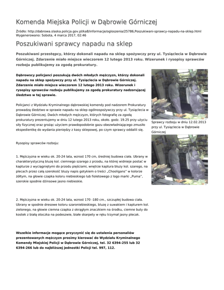 Generuj PDF - Komenda Miejska Policji w Dąbrowie Górniczej