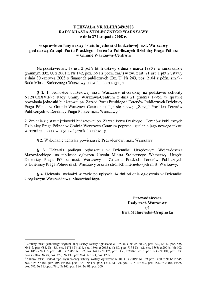 Uchwała Rady m. st. Warszawy nr XLIII/1349/2008 z dnia 27