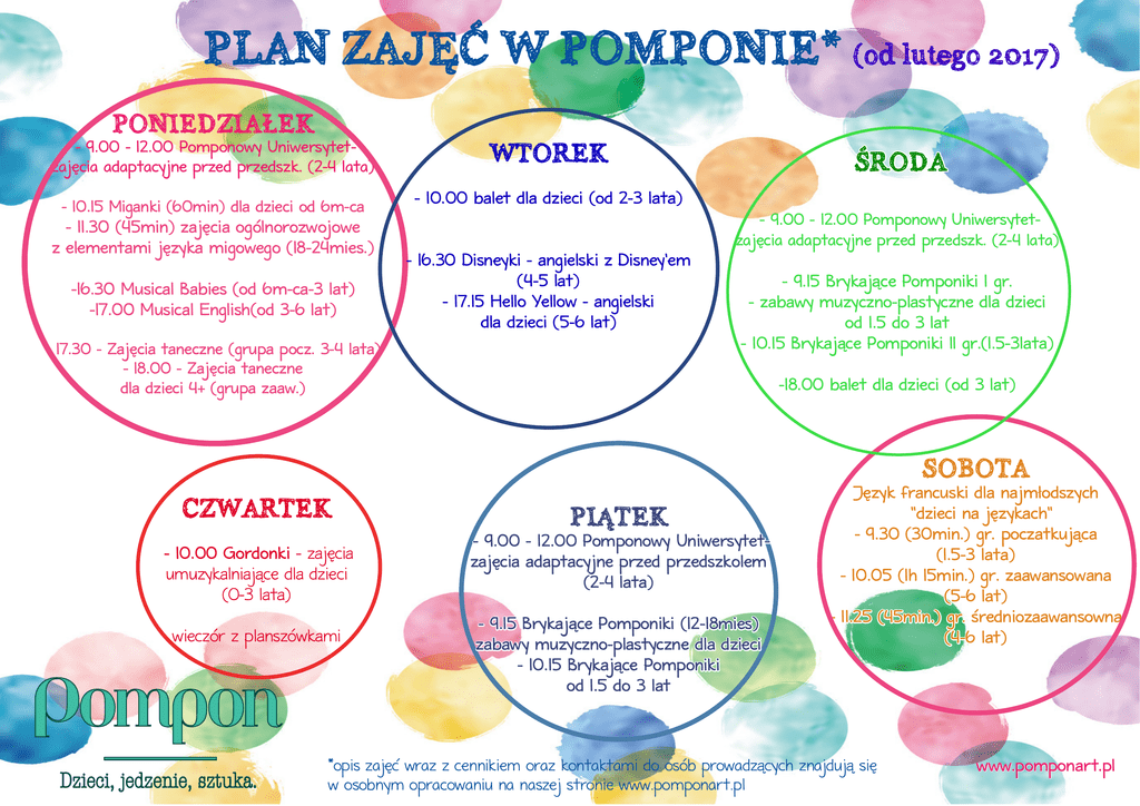 PLAN ZAJĘĆ W POMPONIE* (od lutego 2017)