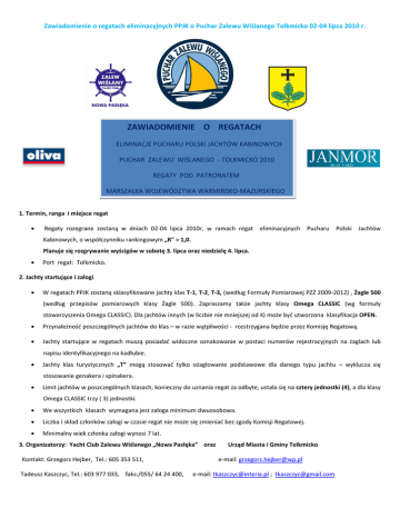 zawiadomienie o regatach - Puchar Polski Jachtów Kabinowych