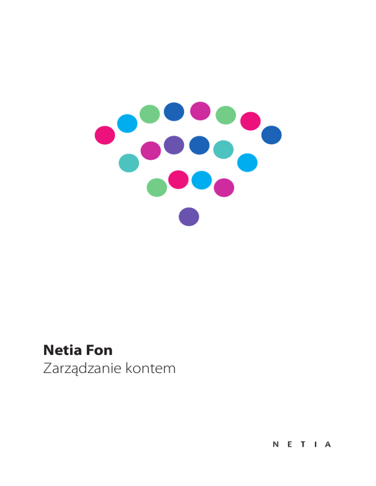 Netia Fon Zarządzanie kontem Zarządzanie kontem Fon W ramach zarządzania swoim kontem Fon możesz zmienić: • swoje dane osobowe • nazwę konta (login) • hasło. Jeżeli zapomniałeś hasła, to tutaj będziesz mógł je odzyskać. W tym celu połącz się z siecią Wi-Fi FON_NETIA_FREE_INTERNET. W pasek przeglądarki wpisz dowolny adres internetowy. Strona portalu Fon pojawi się automatycznie. Kliknij na link My Netia Fon Account na dole strony, a następnie wprowadź swoje dane – hasło i e-mail, które podałeś przy rejestracji. Kliknij Nazwa użytkownika. 2 Teraz możesz zmodyfikować swoje dane. Aby zakończyć pracę, kliknij na link Wyloguj. 3