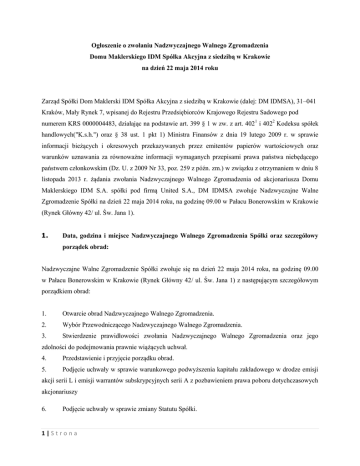 Maklerskiego IDM S.A. spółki pod firmą United S.A., DM IDMSA zwołuje Nadzwyczajne Walne
