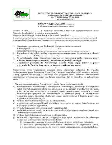 Wzór umowy stażowej - PUP Strzelce Opolskie