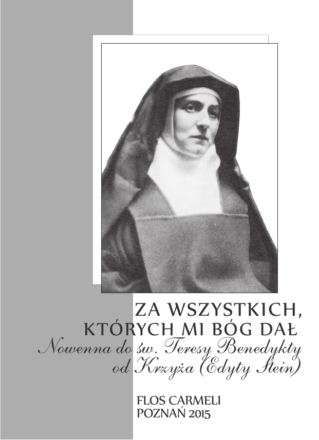 ZA WSZYSTKICH, KTÓRYCH MI BÓG DADz Nowenna do yw. Teresy Benedykty od Krzya (Edyty Stein) FLOS CARMELI POZNAǴ 2015 © Copyright by FLOS CARMELI, 2015 – wydanie 2 Na okładce wykorzystano obraz z kaplicy Krzyża w kościele Karmelitów Bosych w Poznaniu: Św. Benedykta – Teresa od Krzyża (Edyta Stein) pędzla Danuty Waberskiej. Tekst nowenny opracowała: s. J. Immakulata Adamska OCD Imprimi potest: Roman Jan Hernoga OCD, Prowincjał Warszawa, 30.07.2009 r., L. dz. 150/P/2009 Imprimatur: Bp Marek Jędraszewski, Wikariusz Generalny Poznań, dnia 3.08.2009 r., N. 4478/2009 Cenzor: Ks. Kan. dr Michał Tschuschke Wydawca: FLOS CARMELI ul. Działowa 25, 61-747 Poznań tel.: 061/856 08 34; fax: 061/856 09 47 [email protected] www.floscarmeli.pl ISBN 978-83-64430-50-3 EDYTA STEIN ȊW. TERESA BENEDYKTA od Krzya Edyta Stein – św. Teresa Benedykta od Krzyża Edyta Stein urodziła się w 1891 r. we Wrocławiu. Studiowała germanistykę i historię na Uniwersytecie Wrocławskim, na Uniwersytecie w Getyndze, oprócz tych przedmiotów, filozofię pod kierunkiem Edmunda Husserla. W 1916 r. uzyskała doktorat z filozofii na podstawie rozprawy O zagadnieniu wczucia. W latach 1916-1918 pracowała jako asystentka Husserla w Fryburgu Bryzgowickim. Między 1919-1923 działała naukowo, bezskutecznie starając się o habilitację. W latach 1923-1931 wykładała w Niemczech i za granicą, kontynuując pracę naukową i translatorską (opublikowała w 1929 r. artykuł Fenomenologia Husserla i filozofia św. Tomasza z Akwinu, zaś w 1932 r. dwutomowy przekład dzieł św. Tomasza z Akwinu (Quaestiones disputatae de veritate). W 1933 r. otrzymała zakaz działalności nauczycielskiej. W tymże roku wstąpiła do klasztoru sióstr karmelitanek bosych w Kolonii. W latach 1934-1942 powstały najważniejsze jej dzieła: Byt skończony a byt wieczny i Wiedza krzyża. Aresztowana przez gestapo 6 Edyta Stein – św. Teresa Benedykta od Krzyża 2 sierpnia 1942 r., następnie deportowana do obozu w Auschwitz, zginęła w komorze gazowej 9 sierpnia. W 1987 r. Jan Paweł II beatyfikował Edytę Stein, w 1998 r. kanonizował, a w 1999 r. ogłosił współpatronką Europy obok św. Brygidy Szwedzkiej i św. Katarzyny ze Sieny. Między tymi suchymi faktami biograficznymi zamknięte jest życie jednej z najwspanialszych kobiet świata: filozofa i świętej, tłumacza i pedagoga, świadka epoki i współpatronki Europy. Genialność Edyty Stein wyrasta z niezwykłego połączenia pasji poznawczej ze zmysłem transcendentnym i tajemnicy. One to ukorzenione na fenomenologicznym fundamencie pozwalają docierać do istoty badanych zjawisk i przekraczać naturalne uwarunkowania rozumu. Umożliwiają wyjście poza wąski racjonalizm, wskazać filozoficzne przejście między rozumem i wiarą, zbudować twierdzę duchową dla poszukującego prawdy człowieka i dotrzeć do Absolutu, a w konsekwencji do Boga. 7 Edyta Stein – św. Teresa Benedykta od Krzyża Niezwykle trudna filozoficznie i egzystencjalnie droga Edyty Stein wiedzie przez różne zawiłe problemy wiedzy i życia. Jej niezawodność weryfikuje skala podejmowanych zagadnień i uniwersalność rozwiązań. Fenomenologiczna metoda Edyty Stein i jej zarazem postawa życiowa pokazuje istotę człowieczeństwa, odporną na działanie naukowych trendów i zmiennych warunków społecznych i politycznych. Wytrzymuje próbę relatywizacji prawdy i dobra z racji wskazanego już niezwykłego połączenia pasji poznawczej i zmysłu transcendencji, ale i ukierunkowania na poznanie nadnaturalne i światła prawdy Objawionej. A.G. (szerzej zob.: Światło rozumu i wiary. Duchowa droga Edyty Stein św. Teresy Benedykty od Krzyża, TOTALDRUK, Poznań 2002, s.15-26). 8 NOWENNA do yw. Teresy Benedykty od Krzya Nowenna do św. Teresy Benedykty od Krzyża Dzień 1. MĄDROŚĆ MODLITWA WSTĘPNA: Serce Jezusa, gorejące miłością ku Ojcu w niebie! Niech Twoja miłość przepromieni nasze życie i uczyni je podobnym do Twego, gdyż stworzeni jesteśmy z miłości i do miłości. Dziękujmy Panu, bo jest dobry, bo na wieki miłosierdzie Jego! Udziel, Panie, sercom naszym miłości, jaką obdarzyłeś św. Teresę Benedyktę od Krzyża, i pozwól nam stać się – jak ona – jej zwiastunami. Dziękujmy Panu, bo jest dobry, bo na wieki miłosierdzie Jego! Prosimy Cię, Panie, o łaskę naśladowania Twej służebnicy w oddaniu się Tobie, abyśmy mogli być również świadkami Twojej miłości. Dziękujmy Panu, bo jest dobry, bo na wieki miłosierdzie Jego! Usłysz, Panie, łaskawie naszą modlitwę, jaką zanosimy ku czci Twego Boskiego majestatu 10 Nowenna do św. Teresy Benedykty od Krzyża w duchu dziękczynienia za łaski udzielone św. Teresie Benedykcie. Wraz z całym Kościołem modlimy się: Tyś chwałą Jeruzalem, Tyś weselem Izraela, Tyś chlubą ludu chrześcijańskiego! Dusza kobieca powinna być szeroka i otwarta na wszystko, co ludzkie; musi być spokojna, aby nie wygasić gwałtownym podmuchem najmniejszego nawet płomyka; musi być ciepła, by delikatne kiełki nie ucierpiały od zimna; musi być jasna, aby w ciemnych kącikach czy fałdkach nie zagnieździły się jakieś szkodniki; musi byś w sobie zwarta, aby to, co się wciska z zewnątrz, nie uszkodziło życia wewnątrz; musi być wolna od siebie samej, aby w sobie uczynić miejsce dla innego życia; w końcu musi być panią siebie i swego ciała, aby całą osobowością odpowiedzieć na każde wezwanie. Umieć o sobie zapomnieć, wyrzec się wszystkich osobistych pragnień i praw, mieć serce otwarte na wszelki cudzy ból i potrzeby – oto ideał kobiecości. 11 Nowenna do św. Teresy Benedykty od Krzyża MODLITWA DNIA: Jezu, Oblubieńcze czystych dusz! Ty objawiłeś św. Teresie Benedykcie tajemnicę swej Boskiej miłości i obdarzyłeś ją mądrością kochania aż do ofiary z życia. Udziel nam, za jej przyczyną, łaski służenia Ci czystym sercem, abyśmy przez całą wieczność mogli Cię ogląda
