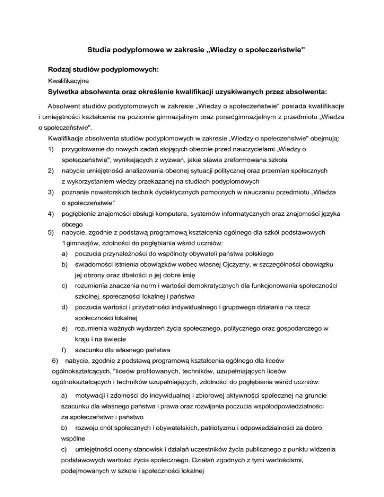 Studia podyplomowe w zakresie „Wiedzy o społeczeństwie" Rodzaj