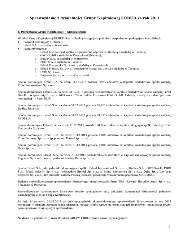 Sprawozdanie z dzia alno ci Grupy Kapita owej ERBUD za rok 2013