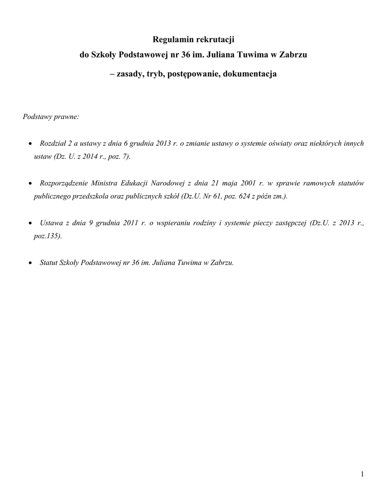 Regulamin rekrutacji do Szkoły Podstawowej nr 36 im
