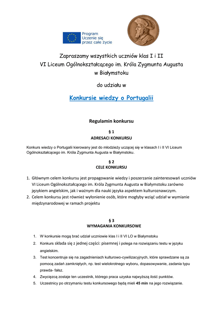 Konkursie wiedzy o Portugalii - VI Liceum Ogólnokształcące w