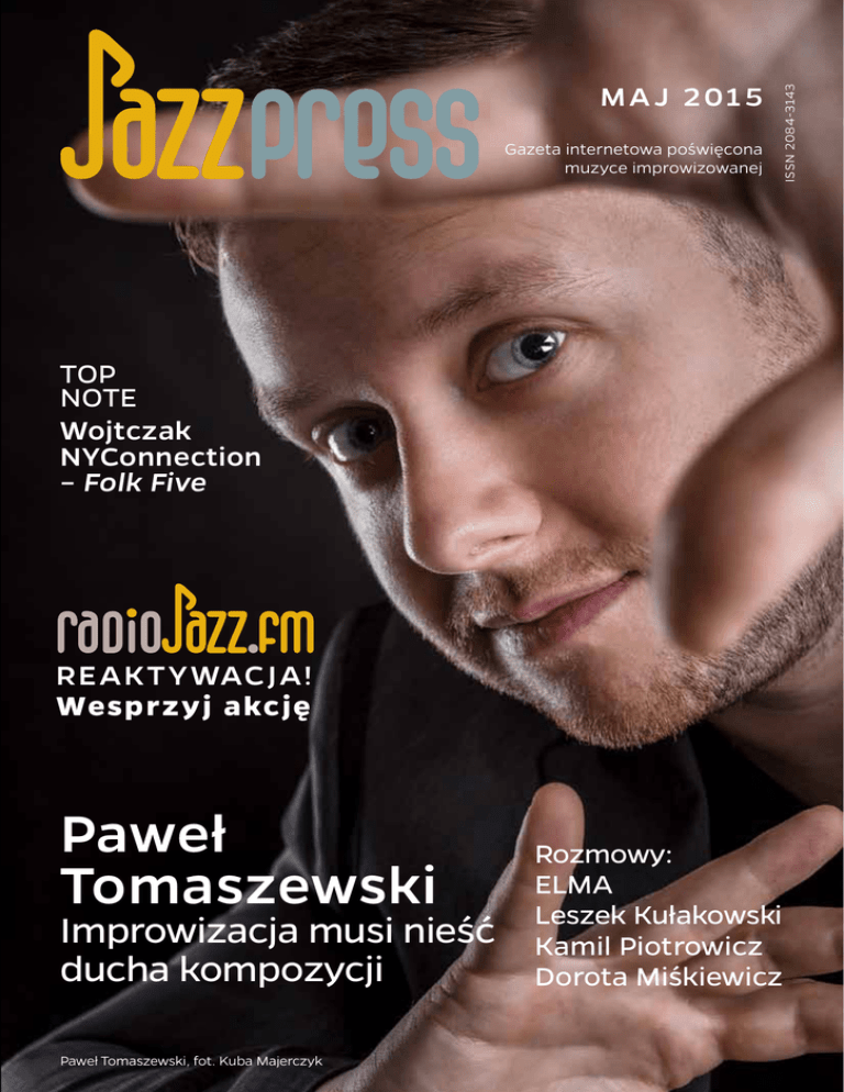 Gazeta internetowa poświęcona muzyce improwizowanej ISSN 2084-3143 M A J 2 01 5 TOP NOTE Wojtczak NYConnection – Folk Five REAKTYWACJA! Wesprzyj akcję Paweł Tomaszewski Improwizacja musi nieść ducha kompozycji Paweł Tomaszewski, fot. Kuba Majerczyk Rozmowy: ELMA Leszek Kułakowski Kamil Piotrowicz Dorota Miśkiewicz < Od Redakcji redaktor naczelny Piotr Wickowski [email protected] „Pewien trzylatek z zaburzeniami ze spektrum autyzmu nauczył mnie minimalizmu w dozowaniu środków wyrazu, pewna szesnastolatka po próbie samobójczej nauczyła mnie precyzji w muzycznym wyrażaniu emocji, pewna kobieta chora na schizofrenię nauczyła mnie odwagi i bezkompromisowości w ekspresji, pewien mężczyzna z oddziału dla podsądnych nauczył mnie muzycznego odzwierciedlania skomplikowanych i powikłanych historii, etc., etc. Takich nauczycieli mam wielu” – mówi muzykoterapeutka, doktor psychologii, ale również kompozytorka i wokalistka ELMA, która w ubiegłym roku zaliczyła udany debiut swoim albumem Hic et Nunc. Dla jazzowego pianisty Pawła Tomaszewskiego jednym z najważniejszych doświadczeń edukacyjnych była współpraca z Moniką Brodką i jej niejazzowym zespołem. „Dla zagorzałego jazzmana potrzeba czasu, żeby do tego dojść i wyzbyć się uprzedzeń, pokochać muzykę, odnaleźć się w muzyce, którą gra się w danym momencie” – uważa Paweł Tomaszewski. Przypomnę jeszcze, co mówił Łukasz Borowicki w rozmowie, którą opublikowaliśmy w marcowym JazzPRESSie. Jest on jednym z wielu polskich muzyków, którzy w ostatnich latach woleli wyjechać z Polski do Danii, aby skorzystać z tamtejszego systemu kształcenia muzycznego: „W Danii nie studiuje się jazzu, tylko muzykę rytmiczną, czyli muzykę ze sztywną kreską taktową, muzykę z pulsem. To nie musi być jazz, może być pop, rock czy cokolwiek studentowi przyjdzie do głowy, paradoksalnie nawet jeśli ma na myśli muzykę bez pulsu. Taki podział na akademiach muzycznych niesie ze sobą konsekwencje w samej edukacji. Pamiętam sytuację z egzaminu na koniec pierwszego roku, kiedy jeden z nauczycieli wręcz namawiał mnie, żebym nie grał tylko jazzu, żebym eksperymentował, szukał czegoś, czego sam nigdy nie słyszałem. W pewnym sensie przypomina to indywidualny tryb nauczania – każdy pracuje nad czymś innym, każdy od początku stara się znaleźć coś swojego”. Czy wyzbycie się uprzedzeń, uczenie się od tych, którzy – jak wydawać by się mogło – nie znają się na rzeczy i eksperymentowanie z założenia, może spowodować, że polskiemu jazzowi nie będzie można zarzucić, że istnieje tylko teoretycznie? Miłej lektury! > SPIS TREŚCI 3 – Od Redakcji 4 – Spis treści 6 – Wydarzenia 7 – Konkursy 8 – Wspomnienie Żegnaj, ostatni z trzech królów B.B. King (1925-2015) 10 – Płyty 10 12 Pod naszym patronatem Top Note Wojtczak NYConnection – Folk Five 16Recenzje Jerzy Milian – Jerzy Milian 80 MazzSacre – + Marcin Nowakowski – Live Samuel Blaser – Spring Rain Eberhard Weber – Encore Jukka Perko & Iiro Rantala – It Takes Two to Tango Anouar Brahem – Souvenance Chris Potter’s Underground Orchestra – Imaginary Cities Chick Corea Trio – Trilogy Tomoko Omura – Roots Marilyn Mazur, Josefine Cronholm, Krister Jonsson – Flamingo Sky Michał Wierba Doppelganger Project – Orange Sky 40 – Koncerty 40 44 63 73 78 82 84 86 89 92 < Przewodnik koncertowy Nie jeden świat jazzu Zręcznie skomponowany muzyczny maraton Siedem dni wokół jazzu w Lublinie Jazzowe gwiazdy i odległe rejony okołojazzowe Sobowtór (?) Michała Wierby i spółka Nieoczekiwana zmiana basu Muzyczne ewolucje Cinematic Orchestry Na dwóch krańcach świata The Necks w obiektywie Kuby Majerczyka JazzPRESS, maj 2015 5 95 – Rozmowy 95 Paweł Tomaszewski Improwizacja musi nieść ducha kompozycji 107ELMA Blondynka w laboratorium improwizacji 117 Leszek Kułakowski Jazz najlepszy jest na scenie 122 Kamil Piotrowicz By każdy dźwięk, który napisałem, był mój i był dla mnie 126 Dorota Miśkiewicz Cały ten jazz! MEET! – Dorota Miśkiewicz 135 –Galeria improwizowana Marcin Wilkowski 140 – Słowo na jazzowo 140 Słuchając we dwoje „Muzyka to siła, która uzdrowi Wszechświat” 144 On the Corner Jazzterday – czyli Bitelsi na jazzowo 146 Spod pióra dźwiekografa Na ratunek Ziemi 150 –Pogranicze 150 World Feeling 152 –Redakcja Twoje wsparcie = kolejny numer JazzPRESSu nr konta: 05 1020 1169 0000 8002 0138 6994 wpłata tytułem: Darowizna na działalność statutową Fundacji > Wydarzenia fot.Radek Świątkowski 6| 29 maja premierę będzie mieć najnowszy album Włodka Pawlika. Płyta America, nagrana Przez Indonezję, Australię i Nową Zelandię prze- z Pawłem Pańtą na kontrabasie i Cezarym Kon- biegać będzie w najbliższych tygodniach trasa radem na perkusji, jako Włodek Pawlik Trio, koncertowa Artura Dutkiewicza i jego tria. Od podsumowuje 30 lat artystycznej pracy jedyne- 26 maja do 7 czerwca zespół w składzie: Artur go polskiego muzyka jazzowego nagrodzonego Dutkiewicz – fortepian, Michał Barański – kon- Grammy. Producentem płyty jest Pawlik Rela- trabas i Grzegorz Grzyb – perkusja zagra siedem tions, a dystrybutorem Fonografika. koncertów, między innymi w Salihara Theatre „Ten album jest efektem moich muzycznych fa- w Dżakarcie, Jazz Club Ubut na Bali i w Foundry scynacji, które miały miejsce na przestrzeni 616 w Sydney. Wystąpi też na Melbourne Inter- ostatnich trzech dekad. Na tej płycie nie ograni- national Jazz Festival, uważanym za jeden z naj- czyliśmy się więc do typowych jazzowych kom- większych festiwali jazzowych na świecie, obok pozycji. Poza utworami napisanymi w różnym takich gwiazd jak: Herbie Hancock, Chick Co- czasie – lecz do tej pory nigdy nienagranymi – rea, Joe Lavano, Kurt Elling, Pharoah Sanders, przełożyliśmy na język naszego tria ulubione Dee Dee Bridgewater, Richard Bona, Eric Har- 