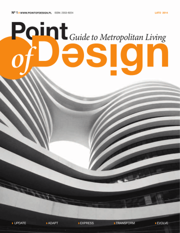 No 1 WWW.POINTOFDESIGN.PL LATO 2014 ISSN: 2353-9224 Guide to Metropolitan Living UPDATE ADAPT EXPRESS TRANSFORM EVOLVE 2 – Point of Design – Lato / 2014 Edytorial „Point of Design – Guide to Metropolitan Living” - jest o Tobie, Twoim świecie i potrzebach, wyrażonych poprzez znakomite wzornictwo przemysłowe, pobudzającą zmysły sztukę i architekturę, nowoczesne technologie czyniące życie łatwiejszym oraz przedmioty, miejsca i ludzi, którzy inspirują. Twój świat to tętniące życiem miasto, uzależniające od ogromu możliwości, od kolorytu, różnorodności, multikulturowości i sposobu, w jaki Cię pobudza. Homo Metropolitanus – to także prawdopodobnie Ty człowiek zamieszkujący jedną z dużych światowych metropolii, stale będący w ruchu, śledzący najnowsze trendy w modzie, wzornictwie, kulinariach i wielu innych aspektach; świadomy uczestnik rynku i wielbiciel dolce vita. Jednocześnie trendsetter i wczesny naśladowca, który dzięki sieci różnorodnych kontaktów i dostępowi do ciekawych informacji, staje się twórcą i znawcą wysmakowanego designu. Designu, który podobnie jak Ty, ewoluuje w czasie, modernizuje się, dostosowuje się do aktualnych potrzeb i mód, szuka sposobu na wyrażenie głębszych idei poprzez formę zewnętrzną, jest w stanie ciągłych przeobrażeń. I właśnie dlatego stworzyliśmy dla Ciebie ten przewodnik, bo chcemy byś się nie zmieniał w swoim dążeniu do doskonałości i poszukiwaniu form idealnych. Pomożemy Ci jedynie wyrobić sobie właściwy dla Homo Metropolitanus „point of design”. Zapraszam do lektury, która przeniesie Cię do świata metropolii. Agnieszka Bzdyra Redaktor Naczelna 3 – Point of Design – Lato / 2014 S Spis treści Update 10 15 Adapt Express 40 Zaha Hadid. Na granicy geniuszu i utopii. Contemporary design. Trendy w nowoczesnym wzornictwie. 18 26 Steve Jobs – architekt współczesnej estetyki. 30 20 34 Design zakrapiany alkoholem. 36 Cold War Modern. Snobistyczna moda metropolii. Arne Jacobsen. Twórca multidyscyplinarny. Podróbki - plaga świata designu – wywiad z Paulem Maierem. La caffettiera del Bialetti – design, który zmienił zwyczaje. 44 Art beyond taste. Celebracja zwyczajności w wydaniu Jeffa Koonsa. Modne „made in Poland” – wywiad z Marcinem Paprockim i Mariuszem Brzozowskim. 48 Plastic á la mode. 50 54 Vintage high fashion – alternatywna forma inwestycji w sztukę. Butelkowanie prawdy – wywiad z Jarosławem Cybulskim. s. 10 s. 30 s. 48 4 – Point of Design – Lato / 2014 Redaktor Naczelna Agnieszka Bzdyra [email protected] Dyrektor Artystyczny Łukasz Kwasiborski [email protected] Transform Evolve 60 10 interior design trends 2014. 70 Andaz Amsterdam – hotel roku 2014. 76 80 Chaos okiełznany. Wnętrza inspirowane metropoliami. Grand design – Hermès Rive Gauche boutique. Zespół Redakcyjny Anna Rułka-Jabłczyńska [email protected] Magdalena Jurczuk [email protected] Artur Maciorowski [email protected] 86 Urban trends: 15 miejskich trendów głównych. 92 Reklama Magda Sasin [email protected] tel.: +48 698 985 784 Skład DTP – kreacja.co Wybrani. Salone Internazionale del Mobile. Korekta – eKorekta24.pl Druk – Poligrafia Janusz Nowak Sp. z o.o. 96 100 104 106 Pastelowy trend na lato. Outdoor design – udane powroty do miasta. Konsumpcja guilt free – mega trendy. Best cities in the world – metropolie z wyróżnieniem. Wydawca eCode ul. Ogrodowa 9 05-500 Mysiadło Redakcja ul. Ogrodowa 9 05-500 Mysiadło tel.: +48 22 701 41 03 tel.: +48 784 979 960 [email protected] www.pointofdesign.pl s. 70 s. 96 Publikacja jest chroniona przepisami prawa autorskiego. Wykonywanie kserokopii lub powielanie inną metodą oraz rozpowszechnianie bez zgody Wydawcy w całości lub części jest zabronione i podlega odpowiedzialności karnej. Redakcja nie odpowiada za treść ogłoszeń. 5 – Point of Design – Lato / 2014 Potrzeba 89 lat, by stworzyć tak piękny ruch. Nowy BeoVision Avant 55”, Smart TV od Bang & Olufsen o rozdzielczości Ultra High Definition (4K) z ikonowym dźwiękiem. Sprawdź do w naszym salonie. Rekomendowana cena: 10.500 EURO bang-olufsen.com Bang & Olufsen Centrum ul. Piękna 18, 00-495 Warszawa +48 22 375 69 75 [email protected] Bang & Olufsen Sadyba ul. Limanowskiego 11M, 02-943 Warszawa +48 22 651 73 04 [email protected] *Rekomendowana cena BeoVision Avant 55” zawiera pilota BeoRemote One oraz elektryczną podstawę wysoką, niską lub 6 – Point of Design – Lato / 2014 elektryczny wieszak ścienny. Klasa energetyczna C . 7 – Point of Design – Lato / 2014 Update Moda i trendy to ważne drogowskazy w naszym życiu. Modernizacja najbliższego otoczenia czyni je bardziej przyjaznym dla użytkownika i stanowi łącznik pomiędzy teraźniejszością a przyszłością. UPDATE Zaha Hadid Na granicy geniuszu i utopii Nieustannie podnosi ciśnienie w świecie architektów i krytyków. Tworzy wokół siebie grono wyznawców swojej architektonicznej religii, a jednocześnie przyciąga ludzi z zacięciem zwalczających jej kolejne dzieła. U góry Zaha Hadid. Zdjęcie: Brigitte Lacombe. Zaha Hadid – 63-letnia architektka arabskiego pochodzenia, uznana przez magazyny „Forbes” i „Time” za jedną ze 100 najbardziej wpływowych osób świata. Wyróżniona prestiżową Nagrodą Pritzkera. Po prawej Zaha Hadid Design Gallery w Londynie. Zdjęcie: Patrick Collins. Na dole Heydar Aliyev Cultural Zaha Hadid – grande persona Hadid to instytucja i rozpędzona machina architektoniczno-budowlana. Obecnie zatrudnia blisko 400 pracowników i ma na koncie 950 projektów zrealizowanych w 44 krajach. Zaha Hadid to także marka globalna, pożądana i budząca emocje – tak duże, że często bywa podrabiana i kopiowana, zanim jeszcze zdoła ukończyć dzieło. Center Baku. Zdjęcie: Flickr. Jej znakami rozpoznawczymi są: sinusoidalne, organiczne for- my przestrzenne, daleko wybiegające w przyszłość oryginalną bryłą i mate