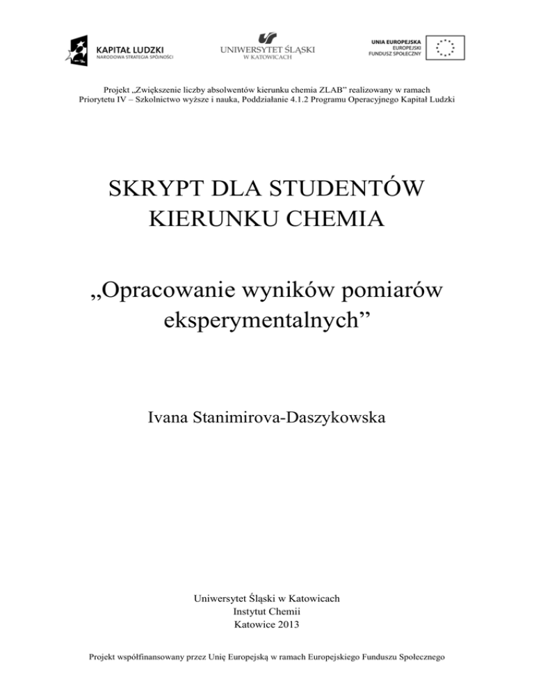 przedstawiają elementarne zagadnienia z zakresu statystyki i metod opracowania wyników