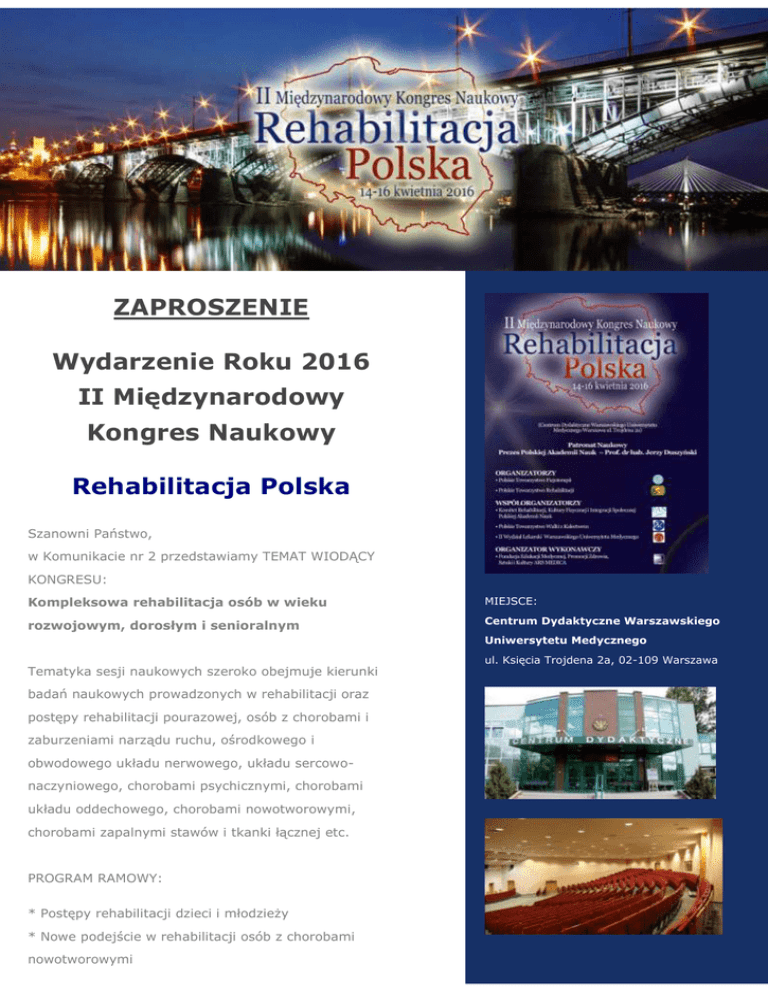 ZAPROSZENIE Wydarzenie Roku 2016 II Międzynarodowy Kongres
