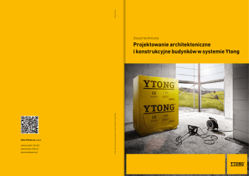 Kwiecień 2016 Zeszyt techniczny Xella Polska sp. z o.o. infolinia 801 122 227 www.ytong-silka.pl www.budowane.pl Ytong , Silka i Multipor są zastrzeżonymi znakami handlowymi grupy Xella. Projektowanie architektoniczne i konstrukcyjne budynków w systemie Ytong Projektowanie architektoniczne i konstrukcyjne budynków w systemie Ytong wydanie IV poprawione Kwiecień 2016 1. Wprowadzenie......................................................................................................... 7 1.1. Historia betonu komórkowego Ytong.......................................................................................... 7 1.2. Proces produkcji.......................................................................................................................... 7 1.3. Informacje ogólne o systemie Ytong........................................................................................... 7 2. Asortyment............................................................................................................ 10 2.1. Bloczki Ytong.............................................................................................................................. 2.2. Płyty Ytong Panel....................................................................................................................... 2.3. Nadproża Ytong.......................................................................................................................... 2.4. Elementy zbrojone Ytong........................................................................................................... 2.5. Elementy dodatkowe.................................................................................................................. 2.6. Zaprawy...................................................................................................................................... 2.7. Akcesoria Ytong......................................................................................................................... 10 11 12 15 17 17 18 3. Zasady projektowania w systemie Ytong............................................................... 19 3.1. Zasady ogólne............................................................................................................................ 3.2. Przyziemie budynku .................................................................................................................. 3.3. Ściany nadziemne ..................................................................................................................... 3.4. Nadproża.................................................................................................................................... 3.5. Stropy......................................................................................................................................... 3.6. Stropodachy, tarasy, balkony..................................................................................................... 3.7. Dachy skośne............................................................................................................................. 19 19 27 49 57 67 76 4. Zasady obliczeń statycznych ................................................................................. 82 4.1. Zasady ogólne............................................................................................................................ 4.2. Parametry wytrzymałościowe muru......................................................................................... 4.2.1. Wytrzymałość charakterystyczna muru na ściskanie ................................................... 4.2.2. Wytrzymałość muru na ścinanie ................................................................................... 4.2.3. Wytrzymałość muru na rozciąganie .............................................................................. 4.2.4. Ściana poddana obciążeniu skupionemu ...................................................................... 4.2.5. Odkształcalność muru ................................................................................................... 4.2.6. Maksymalna wysokość ścian ......................................................................................... 4.2.7. Wymiarowanie ścian obciążonych głównie pionowo ..................................................... 82 82 82 84 84 85 85 86 88 5. Fizyka budowli........................................................................................................91 5.1. Izolacyjność termiczna............................................................................................................... 91 5.2. Klasyfikacja ogniowa.................................................................................................................. 94 5.3. Izolacyjność akustyczna............................................................................................................. 96 6. Przykład obliczeniowy........................................................................................... 99 Copyright © by Xella Polska sp. z o.o. Warszawa 2016 Znaki Ytong, Silka i Multipor są zarejestrowanymi znakami towarowymi. Prawa ochronne na te znaki przysługują Xella Polska sp. z o.o. z siedzibą w Warszawie. Żadna część tej pracy nie może być powielana i rozpowszechniana bez pisemnej zgody wydawcy. 6.1. Dane do obliczeń........................................................................................................................ 99 6.2. Zestawienie obciążeń............................................................................................................... 100 6.2.1. Dach .............................................................................................................................. 100 6.2.2. Strop nad parterem ...................................................................................................... 103 6.2.3.