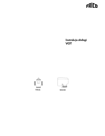 Instrukcja obsługi VOT TRVS SD230 VOT Wykres TRVS Wielkość zaworu można określić, korzystając z poniższego diagramu. [kPa] 100 [l/h] 1000 10000 0,7 70 [bar] 50 40 0,1 .5 s4 Kv .5 s2 Kv Kv s1 .7 DN 15 DN 20 DN 25 10 1 0,01 0,01 0,1 1,0 [l/s] PL VOT Elementy składowe VOT, 3-drogowy zawór regulacyjny z siłownikiem TRVS SD230 VOT15 Typ Opis Specyfikacja TRVS15 SD230 3-drogowy zawór regulacyjny Siłownik on/off 230V DN15 230V~ Typ Opis Specyfikacja TRVS20 SD230 3-drogowy zawór regulacyjny Siłownik on/off 230V DN20 230V~ Typ Opis Specyfikacja TRVS25 SD230 3-drogowy zawór regulacyjny Siłownik on/off 230V DN25 230V~ VOT20 VOT25 VOT, 3-drogowy zawór regulacyjny z siłownikiem 3-drogowy zawór regulacyjny i siłownik dwupołożeniowy DN15/20/25. 230V. W skład zestawu zaworów wchodzą: • TRVS,3-drogowy zawór regulacyjny • SD230,siłownik on/off 230V Zawór 3-drogowy i siłownik regulują przepływ wody i umożliwiają podstawową obsługę przepływu wody bez możliwości regulacji czy odcięcia, np. na czas konserwacji. Siłownik SD230 reguluje dopływ ciepła. W trybie niezasilanym siłownik SD230 jest otwarty. Zestaw zaworów występuje w trzech wersjach wymiarowych, DN15(1/2"), DN20(3/4") i DN25(1"). Używany z układami sterowania SIReBasic i SIReComeptent lub z odpowiednim dodatkowym termostatem. PL VOT 3-drogowy zawór regulacyjny (TRVS) Wymiary i specyfikacja techniczna B DN A Typ DN A [mm] B [mm] TRVS15 15 52 29 TRVS20 20 56 28 TRVS25 25 82 30,5 Kvs*2 Port główny 1,7 Mieszanie 1,7 Rozdział 2,5 Mieszanie 2,6 Rozdział 4,5 Mieszanie 4,5 Rozdział Kvs*2 Port obejścia 1,2 Mieszanie 1,3 Rozdział 1,6 Mieszanie 1,8 Rozdział 3,1 Mieszanie 3,1 Rozdział Ciśnienie zamykania [kPa] Masa [kg] 200 0,2 100 0,25 70 0,55 *2) Kvs = przepływ [m3/h] przy spadku ciśnienia 1 bar przy całkowicie otwartym zaworze. Specyfikacja techniczna PN16 Szybkie otwieranie DN15: 70 kPa DN20: 50 kPa DN25: 40 kPa 2-110 °C 2-50 °C 2,5 mm M30 x 1.5 Korpus:EN12165CW617Mosiądz CuZn40Pb2 Trzpień: AISI 303 stal nierdzewna (X10CrNiS1809) Sprężyna: AISI 302 stal nierdzewna (X10CrNi1809) Uszczelnienie: EPDM PL VOT Obszar zastosowania Funkcja Zawór 3-drogowy i siłownik regulują przepływ wody i umożliwiają podstawową obsługę przepływu wody bez możliwości regulacji czy odcięcia, np. na czas konserwacji. TRVS jest stosowany do gorącej lub zimnej wody i mieszaniny wody i glikolu do 50%. Zawory są przeznaczone do sterowania urządzeniami w normalnych warunkach pracy. Przepływ Ruch trzpienia/przepływ Typ zaworu Trzpień siłownika w dół Brak przepływu Trzpień siłownika w górę 3-drogowy MIESZANIE 3-drogowy ROZDZIAŁ Montaż Wytyczne ogólne W uzupełnieniu do ogólnej instrukcji montażu, należy przestrzegać następujących punktów: • Należy zwrócić uwagę na pozycję zaworu w stosunku do kierunku przepływu. • Należy zwrócić uwagę na symbole przyłączone do korpusu względem kierunku przepływu. Zawór regulacyjny powinien być zamontowany w pozycji pionowej lub poziomej. Odcinek rurowy, który znajduje się przed zaworem powinien być prosty na długości co najmniej 2xDN, natomiast odcinek rurowy za zaworem powinien być prosty na długości co najmniej 6xDN. Instalacja musi być przeprowadzona przez uprawnionego elektryka, zgodnie z instrukcją i obowiązującymi przepisami. System, w którym zamontowany jest zawór musi zawsze spełniać wymogi bezpieczeństwa. Max 90 ° Max 90 ° OK ZŁE PL VOT Siłownik (SD230) Wymiary i specyfikacja techniczna Typ SD230 HxWxD [mm] 81x88x56 Masa [kg] 0,2 On/Off regulacja, ruch liniowy Napięcie zasilania 230V, 50-60 Hz Pobór mocy <1,5 VA w działaniu <0,5 VA w położeniu końcowym Siła skoku 100 N Długość skoku 6,5 mm Pełny czas skoku "On" nominalny 3 s Pełny czas skoku "Off" nominalny 12 s Stopień ochrony IP54 Nakrętka śruby M30x1,5 Długość kabla 1,5 m Klasa izolacji II Temperatura otocz. 0-60 °C Działanie Obszar zastosowania Siłownik elektryczny w połączeniu z zaworem jest stosowany do sterowania mocą grzewczą urządzenia w funkcji otwórz/zamknij zawór, ON/OFF. Po otrzymaniu zasilania, siłownik otwiera zawór. Siłownik elektryczny może być zamontowany po zainstalowaniu i włączeniu zaworu. Używany z układami sterowania SIReBasic i SIReCompetent lub z odopowiednim dodatkowym termostatem. Tel: +46 31 336 86 00 Fax: +46 31 26 28 25 [email protected] www.frico.se For latest updated information and information about your local contact: www.frico.se Art no: E4482, 2012-11-27 HH/SÅ Main office Frico AB Box 102 SE-433 22 Partille Sweden