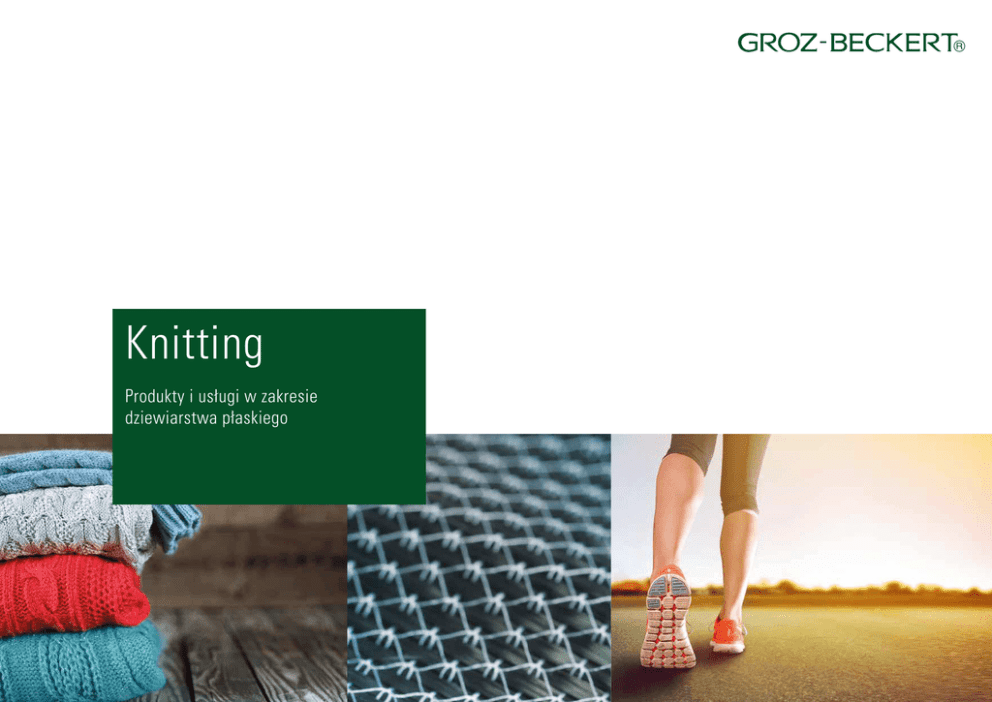 Knitting Produkty i usługi w zakresie dziewiarstwa płaskiego Technologia dziewiarstwa płaskiego Firma Groz-Beckert zajmuje się opracowywaniem, produkcją i dystrybucją igieł maszynowych, części i narzędzi precyzyjnych oraz systemów do różnych procesów łączenia i produkcji wyrobów tekstylnych. Oferta produktów obejmuje akcesoria do procesów dziania, tkania, filcowania, igłowania, gręplowania i szycia. Z myślą o branży dziewiarskiej firma Groz-Beckert oferuje ponad 4.800 doskonałych igieł i części systemowych do dziewiarstwa płaskiego. Dziewiarki płaskie pracują z maksymalnie czterema płaskimi łożami igłowymi, ustawionymi wobec siebie daszkowato w położeniu V. Podobnie jak to ma miejsce w przypadku dziewiarek okrągłych, ruch igły jest realizowany za pomocą tak zwanych zamków. Zamki te są zamocowane na saniach dziewiarki płaskiej. Za poziomy ruch sań w jedną i drugą stronę odpowiadają obydwa łoża igłowe. Stopień precyzji w dziewiarkach płaskich wynosi aktualnie od E 2,5 do E 18. Typowymi obszarami zastosowań są: produkcja odzieży wierzchniej (swetry, kurtki, kamizelki), dodatków (kołnierze, ściągacze, czapki) oraz elementów 3D do zastosowań technicznych (pokrowce na siedzenia lub dzianiny dwuosiowe do wzmacniania konstrukcji zespolonych). 2 Spis treści Technologia2 Produkty i usługi Oferta produktów Nazwy produktów 4 6 7 Zagadnienia z praktyki Różnorodność wzornicza i wielozakresowe stosowanie przędzy Bezpieczne wkładanie nici Funkcja igieł z języczkiem sprężynowym Produkty odpasowane Tekstylia techniczne i przemysłowe 8 9 10 11 12 13 Opakowanie, transport i przechowywanie 14 3 Produkty i usługi Ponad 160-letnie doświadczenie i globalna sieć biznesowa Firma Groz-Beckert zapewnia klientom wyjątkowe wsparcie, oferując systemy i rozwiązania dostosowane do indywidualnych życzeń. Oprócz igieł do dziewiarek płaskich i części systemowych zakres usług realizowanych przez firmę Groz-Beckert obejmuje także różnorodną działalność serwisową. Igła transferowa Vo-Spec. 112.88-68 G 05 Igła suwakowa i suwak SN-M 90.56-46 G 8 Igła transferowa Vo-Spec. 87.92 G 03 Igła transferowa Vo-Spec. 88.128 G 03 5 Oferta produktów Więcej informacji na temat części systemowych Wszystkie komponenty dziewiarek Groz-Beckert są ze sobą idealnie skoordynowane. Perfekcyjne współdziałanie igieł dziewiarskich i części systemowych gwarantuje sprawny i bezbłędny proces tworzenia oczek, zapewniając najwyższą jakość dzianin i maksymalną wydajność. Producenci maszyn z całego świata ufają firmie Groz-Beckert, traktując ją jako partnera w dziedzinie rozwoju i dostawcę najwyższej jakości produktów. W oparciu o tę profesjonalną wiedzę stale udoskonalamy ofertę naszych produktów. Igły dziewiarskie ]] Igły języczkowe ]] Igły z języczkiem sprężynowym ]] Igły suwakowe ]] Igły lewostronne Części systemowe ]] Złączki ]] Przekładki ]] Selektory ]] Przytrzymywacze ]] Elementy transferowe ]] Grzebyki ściągające Igła transferowa Vo-Spec. 87.92 G 03 6 Igła transferowa Vo-Spec. 88.128 G 03 Złączka KT-2/ 137.50 G 2 Przekładka ZS-2/ 35.50 G 1 Selektor ATF-2/ 90.45 G 1 Przytrzymywacz NT-R 28.40-18 G 1 Nazwy produktów Słowniczek Jakie informacje znajdują się na etykietach produktu? Igły dziewiarskie Oryginalny produkt firmy Groz-Beckert 100 Jednostka opakowaniowa/ilość E 7.2 267806 187112 Numer materiałowy B1M6O3 Vo-Spec. 112.70-62 G01 Nazwa materiału/nazwa produktu Numer partii Vo... (Vo, Vosa ...) Wytłaczane igły języczkowe z jedną stopką Wo... Wytłaczane igły języczkowe z dwiema stopkami Deha, Ravisa, ... Igły języczkowe z drutu Vo-Spec. / Vosa-Spec. Dodatkowy numer OEM Kod DataMatrix z numeryczną nazwą materiału SN (SN-N, SN-S, SN-M, …) Igły suwakowe Links Igły języczkowe z dwoma haczykami Części systemowe KT Złączki ZS Przekładki AT Selektory NT Przytrzymywacze UT Elementy transferowe AK (AK-S, AK-K, SN-S, SN-K) Grzebyki ściągające Jakie informacje zawiera nazwa produktu? Vo-Spec. 112.70-62 G 01 1 1 2 3 4 5 6 7 2 3 4 Wytłaczana igła języczkowa Tu: igła transferowa Długość całkowita w mm Grubość 1 w 1/100 mm Grubość 2 w 1/100 mm Groz-Beckert Wariant Groz-Beckert 5 6 Vosa-Spec. 89.75-55 G 015 7 1 1 2 3 4 5 6 7 2 3 4 5 6 SN-UM 85.150-110 G 7 7 Wytłaczana igła języczkowa z rowkiem bocznym Tu: igła transferowa Długość całkowita w mm Grubość 1 w 1/100 mm Grubość 2 w 1/100 mm Groz-Beckert Wariant Groz-Beckert 1 1 2 3 4 5 6 7 2 3 4 5 6 KT 139.85 G 4 7 Igła suwakowa i suwak Ze sprężyną transferową, w stanie zamontowanym Długość całkowita w mm Grubość 1 w 1/100 mm Grubość 2 w 1/100 mm Groz-Beckert Wariant Groz-Beckert 1 1 2 3 4 5 2 3 4 5 Złączka Długość całkowita w mm Grubość 1 w 1/100 mm Groz-Beckert Wariant Groz-Beckert 7 Zagadnienia z praktyki Każdy klient posiada konkretne potrzeby i cele. Dzięki doświadczeniu, profesjonalnej wiedzy i istniejącemu potencjałowi firma Groz-Beckert jako dostawca systemów i rozwiązań z zaangażowaniem pracuje na rzecz sukcesu swoich klientów. Jakie cele sobie stawiacie? ]] Czy chcecie wykorzystać maksimum możliwości dostępnych środków produkcji? celem Waszej działalności są doskonałe dzianiny o najwyższej jakości? ]] Czy szukacie nowych segmentów rynku i nowych aplikacji? ]] Czy chcecie rozwijać zrównoważoną produkcję z racjonalnym wykorzystaniem zasobów? ]] Czy Aby skutecznie osiągnąć zamierzone cele, zachęcamy do kontaktu z firmą Groz-Beckert. 8 Różnorodność wzornicza i wielozakresowe stosowanie przędzy Nowoczesne dziewiarki płaskie nie tylko wykonują skomplikowane procesy tworzenia oczek, lecz także muszą się zmierzyć z najróżniejszymi wymaganiami funkcjonalnymi i najwyższymi standardami. Oprócz różnorodnych możliwości w zakresie wzorów i kolorów klienci końcowi wymagają elastycznych możliwości stosowania przędzy. Igły języc
