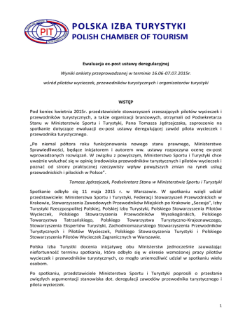 turystycznych i organizatorów turystyki na temat skutków wprowadzonej deregulacji.