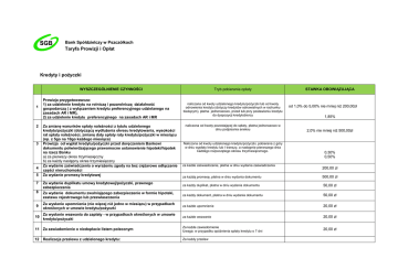 Taryfa Prowizji i Opłat Kredyty i pożyczki