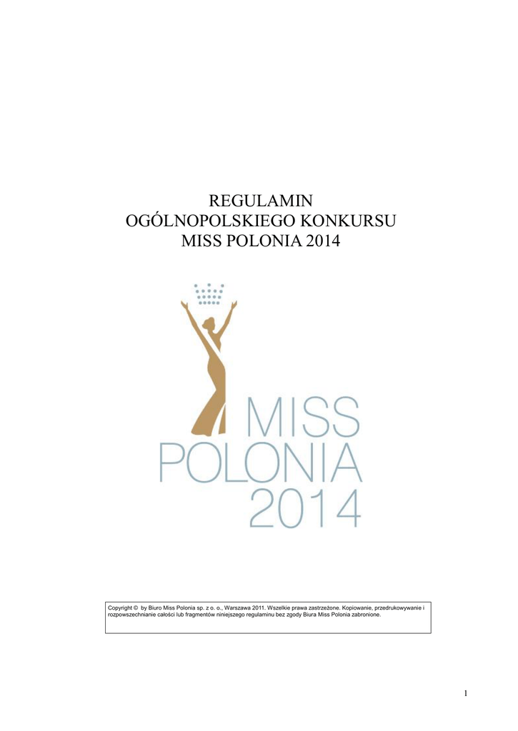 Regulamin Miss Polonia 2014