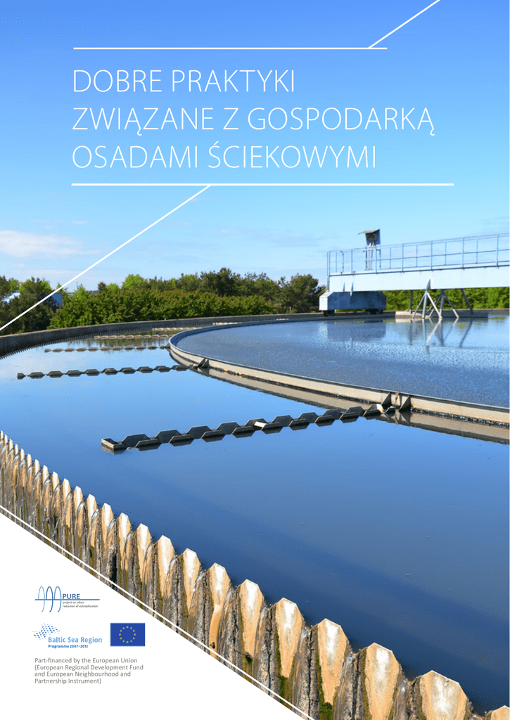 DOBRE PRAKTYKI ZWIĄZANE Z GOSPODARKĄ OSADAMI ŚCIEKOWYMI PURE project on urban reduction of eutrophication Part-financed by the European Union (European Regional Development Fund and European Neighbourhood and Partnership Instrument) DOBRE PRAKTYKI ZWIĄZANE Z GOSPODARKĄ OSADAMI ŚCIEKOWYMI Publikacja i prawa autorskie 2012: Projekt PURE (Project on Urban Reduction of Eutrophication – Projekt redukcji eutrofizacji z obszarów zurbanizowanych) – Komisja Środowiska Naturalnego Związku Miast Bałtyckich, Vanha Suurtori 7, FIN-20500 Turku, Finlandia; www.purebalticsea.eu Rozdziały 3 – 11 i fragmenty rozdziału 2 niniejszej publikacji powstały w oparciu o raport techniczny sporządzony przez Pöyry Finland Oy dla PURE: Proven standard practices and innovative new solutions of sludge handling in the Baltic Sea Region (Sprawdzone standardowe sposoby postępowania i nowe innowacyjne rozwiązania z zakresu gospodarki ściekowej w regionie Morza Bałtyckiego). Pozostali autorzy i redaktorzy: Jan-Eric Luft, Entsorgungsbetriebe Lübeck; Tuuli Ojala, John Nurminen Foundation; Lotta Ruokanen, Helsinki Commission; Olena Zinchuk, Komisja Środowiska Naturalnego Związku Miast Bałtyckich. Autorzy zdjęć są wymienieni obok każdego zdjęcia. Projekt i układ graficzny: Sari Sariola, Moira Åkerman, Komisja Środowiska Naturalnego Związku Miast Bałtyckich. Tłumaczenie z języka angielskiego: Lingoneer Oy Weryfikacja tłumaczenia z języka angielskiego: Ryszard Rydzyński, Zakład Wodociągów I Kanalizacji Sp. z o.o. w Szczecinie. Liczba stron: 125 ISBN 978-952-5725-95-7 (wersja drukowana), 978-952-5725-96-4 (PDF) Opublikowano: październik 2012 r. Part-financed by the European Union (European Regional Development Fund and European Neighbourhood and Partnership Instrument) DOBRE PRAKTYKI ZWIĄZANE Z GOSPODARKĄ OSADAMI ŚCIEKOWYMI SPIS TREŚCI SPIS TREŚCI 1. PRZEDMOWA ................................................................................................................................................ 4 1.1 Projekt redukcji eutrofizacji z obszarów zurbanizowanych (PURE) na rzecz poprawy komunalnej gospodarki ściekowej......................................................................................................................................................................5 1.2 Na drodze do znalezienia wspólnych rozwiązań dotyczących gospodarki osadami ściekowymi dla regionu Morza Bałtyckiego..........................................................................................................................................................................5 2. WSTĘP................................................................................................................................................................. 9 2.1 Osady ściekowe – problem czy szansa..................................................................................................................................10 2.2 Podstawowe informacje na temat przetwarzania osadów ściekowych w komunalnych oczyszczalniach ścieków....11 2.3 Typowe kombinacje technologii przetwarzania osadów ściekowych................................................................................14 2.4 Przykład: Rozwiązania w zakresie obróbki osadów ściekowych opracowane w ramach projektu PURE – Gdańsk, Gdańska Infrastruktura Wodociągowo-Kanalizacyjna Sp. z o. o., Wschód...........................................................16 2.5 Przykład: Rozwiązania w zakresie obróbki osadów ściekowych opracowane w ramach projektu PURE – Brześć, Komunalne Przedsiębiorstwo Wodociągowo-Kanalizacyjne Brestvodokanal........................................................17 3. ZAGĘSZCZANIE OSADÓW ŚCIEKOWYCH................................................................................... 18 3.1 WSTĘP......................................................................................................................................................................................19 3.2 Zagęszczanie grawitacyjne.......................................................................................................................................................20 3.3 Zagęszczanie mechaniczne......................................................................................................................................................22 3.4 Przykład: Rozwiązania w zakresie obróbki osadów ściekowych opracowane w ramach projektu PURE – Ryga, SIA Rigas Udens, oczyszczalnia ścieków Daugavgrīva..................................................................................................25 3.5 Najczęściej stosowane technologie zagęszczania – podsumowanie ................................................................................26 4. STABILIZACJA................................................................................................................................................. 28 4.1 Zasady fermentacji beztlenowej.............................................................................................................................................29 4.2 Proces fermentacji mezofilowej.............................................................................................................................................30 4.3 Pozostałe informacje na temat fermentacji..........................................................................................................................33 4.4 Podsumowanie dotyczące fermentacji beztlenowej............................................................................................................34 4.5 Produkcja i uzdatnianie biogazu.............................................................................................................................................34 4.6 Wykorzystanie energii ....................................................................................................