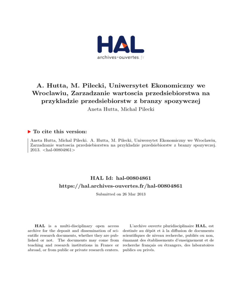 A. Hutta, M. Pilecki, Uniwersytet Ekonomiczny we Wroclawiu