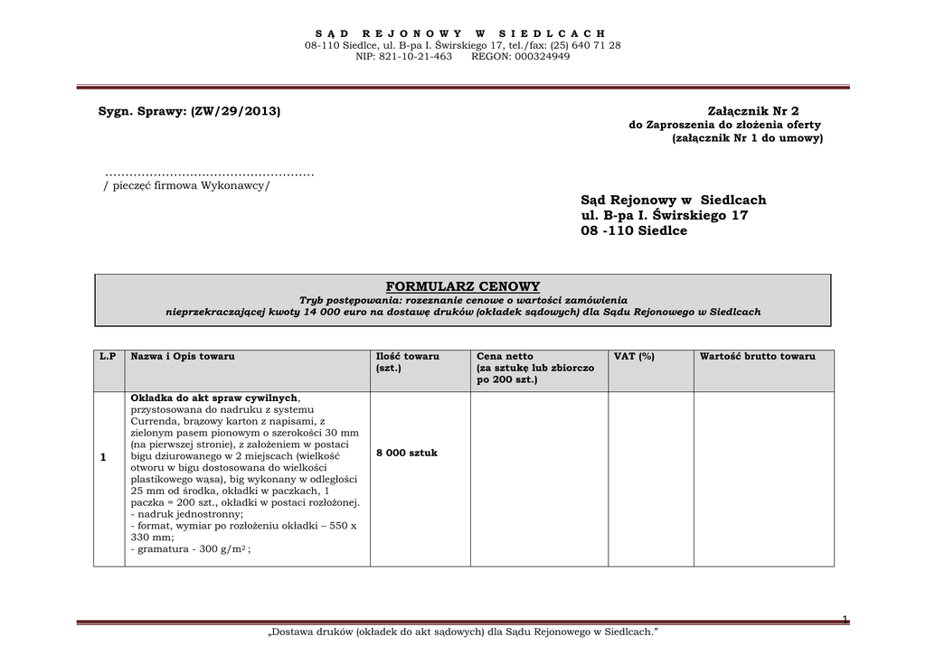 Formularz Cenowy - Sąd Rejonowy w Siedlcach