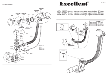 AREX.1825CR - Square przelew wannowy z nape³nieniem 570 mm AREX.1845CR - Square przelew wannowy z nape³nieniem 800 mm AREX.1865CR - Square przelew wannowy z nape³nieniem 1000 mm AREX.1825CR AREX.1845CR AREX.1865CR