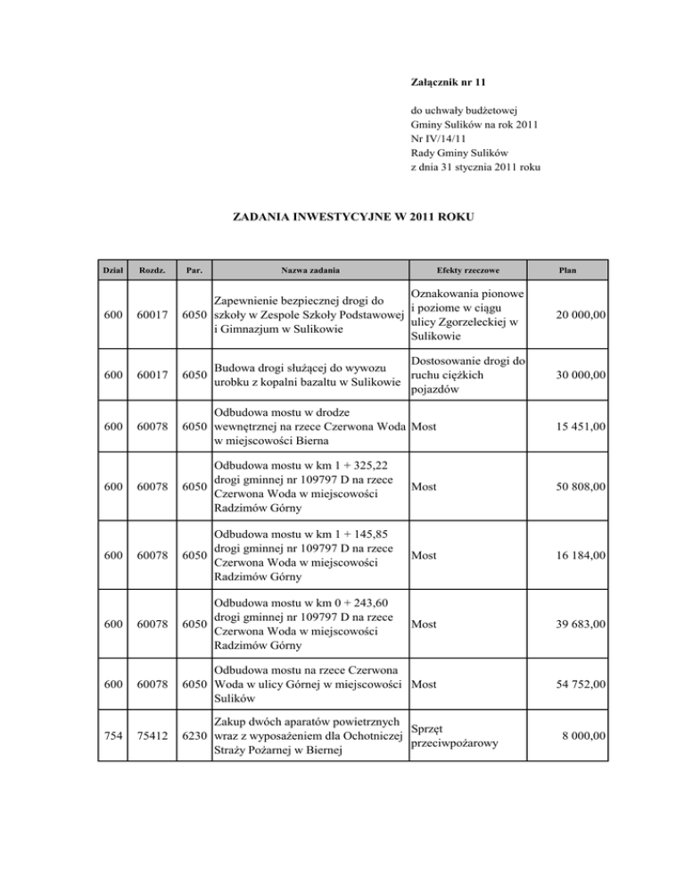 Załącznik nr 11 - Zadania inwestycyjne w 2011 roku