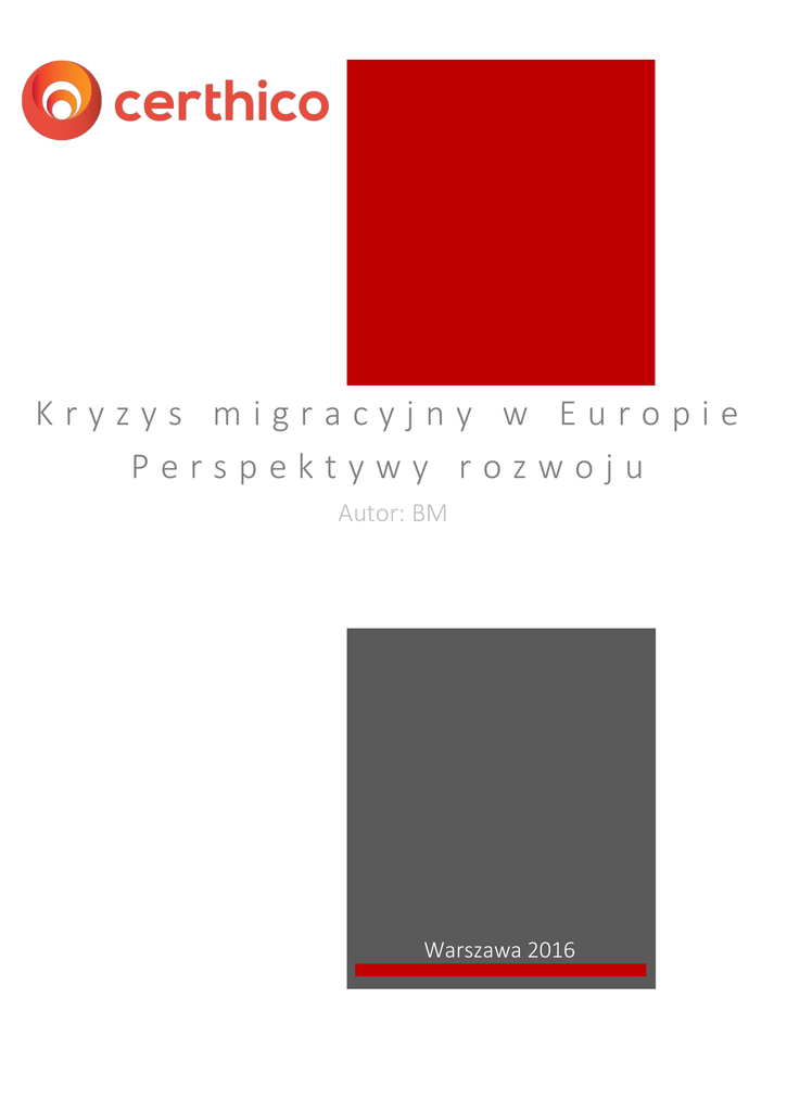 Kryzys migracyjny w Europie Perspektywy rozwoju Autor: BM Warszawa 2016 Kryzys migracyjny w Europie – perspektywy rozwoju Od początku 2014 r. w państwach Unii Europejskiej wniosek o przyznanie statusu uchodźcy złożyło ponad 2 mln migrantów. Część z nich wyemigrowała z krajów objętych konfliktem lub długotrwałym kryzysem polityczno-społecznym. Obecnie obserwowany kryzys migracyjny jest, zdaniem analityków międzynarodowego think tanku Overseas Development Institute (ODI), najpoważniejszym od czasu drugiej wojny światowej. Problem związany z uchodźcami stał się zagadnieniem generującym intensywną debatę publiczną. Kryzys migracyjny ukazał również brak szerokiej polityki migracyjnej państw członkowskich UE. 1 Geneza kryzysu migracyjnego Jednej z głównych przyczyn trwającego od 2015 r. kryzysu migracyjnego należy upatrywać w wydarzeniach określanych przez media jako „arabska wiosna ludów”. W okresie od grudnia 2010 r. do października 2013 r., w krajach Bliskiego Wschodu oraz Afryki Północnej, dochodziło do licznych wystąpień społecznych przeciwko władzom. W Algierii, Iraku, Jordanii, Omanie, Mauretanii, Sudanie oraz Arabii Saudyjskiej, doszło do licznych protestów. W Tunezji, Jemenie oraz Egipcie wybuchły rewolucje, które doprowadziły do zmiany władz. W Libii oraz w Syrii rozpoczęły się wojny domowe. Drugą, równie istotną przyczyną, jest aktywność tzw. Państwa Islamskiego (PI, Daesh), które funkcjonuje na terenach Syrii i Iraku. Bojownicy PI prowadzą działania zbrojne przeciwko wojskom rządowym Damaszku oraz Bagdadu. Daesh na podporządkowanych sobie terenach prowadzi czystki etniczne i religijne. Obszar kontrolowany przez bojowników jest zarządzany zgodnie z prawem koranicznym. Efektami konfliktów związanych z „Arabską Wiosną” oraz działalnością Daesh jest destabilizacja państw i obniżenie poczucia bezpieczeństwa ich mieszkańców. W ocenie ekspertów czynnikiem wpływającym na wysokość poziomu migracji jest kwestia sprawnego funkcjonowania państw na Bliskim Wschodzie. W ostatnim czasie wiele krajów arabskich przeżywa kryzys, co negatywnie odbija się na pracy lokalnych służb bezpieczeństwa oraz straży granicznych. Z tego powodu większa liczba migrantów jest w stanie opuścić te państwa bez kontroli. Konsekwencją trwającej od 2011 r. wojny domowej w Syrii oraz aktywności Daesh jest opuszczenie stałych miejsc bytowania przez ok. 13 mln Syryjczyków. Część z nich wybrała ucieczkę poza granicę swojego kraju. Od września 2015 r. działania wojsk Baszara al-Asadasa wspierane przez rosyjskie siły zbrojne. Dzięki temu armia wierna rządowi 1/11 Kryzys migracyjny w Europie – perspektywy rozwoju w Damaszku zaczęła odnosić znaczne sukcesy militarne. Według ekspertów może to doprowadzić do zwiększenia fali syryjskich uchodźców. Również wojna domowa w Libii, trwająca od 2011 do 2016 r., skutkowała zwiększeniem migracji z tego kraju. Obecnie większość uchodźców, którzy próbują przedostać się przez Libię do Europy, stanowią mieszkańcy centralnej części kontynentu afrykańskiego. Jest to związane ze złą sytuacją w ich krajach oraz słabą ochroną libijskich granic (południowej oraz morskiej). W opinii Łukasza Fyderka z Wydziału Studiów Międzynarodowych i Politycznych Uniwersytetu Jagiellońskiego, jako czynniki przyczyniające się do migracji można wskazać nie tylko konflikty zbrojne, które są dosyć częstym zjawiskiem na Bliskim Wschodzie. Jego zdaniem zdecydowanie większy wpływ na decyzję o wyjeździe z kraju ma upadek państwa pogrążonego w długotrwałym konflikcie: pozbawienie władz możliwości decyzyjnych oraz funkcji opiekuńczych nad obywatelem. Jako inne czynniki wskazał m.in. związany z wojnami oraz klęskami żywiołowymi kryzys humanitarny, czy też wzrost populacji spowodowany dużą dzietnością arabskich kobiet1. Według Ł. Fyderka migrację ułatwia również nowa technologia, a przede wszystkim nowoczesne telefony komórkowe z GPS, mapami oraz dostępem do internetu. Zdaniem ekspertów, w kontekście politycznym migranci, od dawna byli i nadal są wykorzystywani na Bliskim Wschodzie jako karta przetargowa. Przykładem takiego działania jest Turcja, która mogłaby doprowadzić do ograniczenia nielegalnej migracji. Pozwalając jednakże na przepływ uchodźców do Grecji próbuje wywrzeć presję na Unii Europejskiej, w celu uzyskania ustępstw politycznych w kwestiach wizowych czy finansowania przez Wspólnotę obozów dla migrantów. Ponadto, w opinii analityków portalu Defence24, Turcja, pozwalając imigrantom przedostawać się do Grecji, próbuje uzyskać zgodę na utworzenie „strefy bezpieczeństwa”, do której mieliby zostać przesiedleni syryjscy uchodźcy. Obszar ten miałby powstać w Rożawie w północnej Syrii, nazywanej również Zachodnim Kurdystanem. Eksperci Ośrodka Studiów Wschodnich (OSW) wskazują, że strefa ta powinna zostać objęta zakazem lotów oraz ewentualną operacją naziemną celem zapewnienia ochrony zgrupowanych tam uchodźców przed ewentualną ofensywą sił al-Asada. Każdy z tych elementów przerasta samodzielne możliwości Turcji i wymaga zaangażowania wojsk i organizacji humanitarnych z UE oraz USA. W ocenie Defence24 Unia miałaby zmusić Kurdów do udostępnienia terenu, który miałby zostać zasiedlony przez etnicznych Arabów. Mogłoby to zostać w późniejszym czasie wykorzystane przez Ankarę do prowadzenia działań przeciwko Kurdom. 2 Kryzys migracyjny – stan obecny 2.1 Statystyki Zgodnie z danymi przedstawionymi przez Wysokiego Komisarza Narodów Zjednoczonych do spraw Uchodźców(UNHCR) przez Morze Śródziemne w okresie od stycznia 1 Zgodnie z danymi przytoczonymi przez Ł. Fyderka, w zależności od kraju arabskiego, jedna kobieta rodzi od 8 do 12 dzieci. 2/11 Kryzys migracyjny w Europie – perspektywy rozwoju do października 2015 r. do Europy przepraw