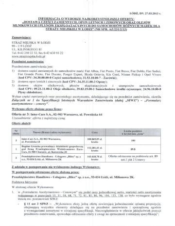 Zamawiajqcywymagalwskazanianazwy producantaeferowanychczgSoizamiennych,opon,2ar6wek,olej6w