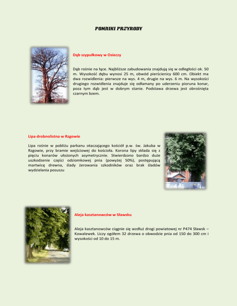 POMNIKI PRZYRODY Dąb szypułkowy w Osieczy