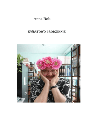 Anna Bołt Kwiatowo i rodzinnie Mojej siostrze - Marysi Moja siostra – Marysia Kocha azalie Bo późno wyszła Za mąż I wtedy w lutym Nie było kwiatów Tylko w doniczkach Azalie Złamane różem Więc urwała gałązkę I tak poszła Do ślubu I idzie jak azalia Szczęśliwa i nieszczęśliwa Złamana różem Już nie młoda A on ją widzi Wciąż Jak azalie Najpiękniejsze z kwiatów Wiersz pistacjowy – od Ani Dziewczyna z pistacjową różą we włosach wysiadała z autobusu w Tczewie pod bluzką też pistacjową miała lekki gorset tak mnie zachwycił ten widok, że obiecałam, iż napiszę wiersz pistacjowy, bo było upalne popołudnie i dobrze byłoby pójść na lody pistacjowe albo na kawę do Pellowskiego... Kalia – dla Danuty Siedzikówny Zasłonięta kalią Poetka – dziecko Grzesznica i Święta – pozuje do Fotografii A Danka zaplotła Warkocze Tysiące warkoczyków Mysich ogonków I białą wstążkę Wplotła we włosy Danka – żołnierka Z karabinem Sama wśród Trzydziestu mężczyzn Poetka podstawiła Kalię pod głowę Żołnierki i Korale kapały Do ślubnego kielicha Dla Danki i dla poetki Mniszek Mniszek i lekarski I pospolity, okołobiegunowy I kosmopolityczny Mlecz, synonim męskiej stałości Ale owocostan zwany Już dmuchawcem Puch przenoszony daleko, hen Do małego miasteczka Gdzie dziewczyna inna niż Wszystkie pisze wiersze O kwiatach I o kotletach I czeka aż przybędzie Książę Z mieczem każącym Ale przez miecz biegnie Żyła przebaczenia I Książę nie jest już Księciem Tylko starym, samotnym Człowiekiem I nie przybędzie, bo ma w nosie Kotlety – dla Helenki Dwa razy w tygodniu Moja siostra Helenka Tłucze kotlety Schabowe – zgrabnym tłuczkiem Biały piesek leży Na podłodze i Myśli, że to może Wojna na Wschodzie Idą Ruscy I zabijają grzeczne dzieci – Pieski a także Krzywdę robią pani Rozwalą 100-letnią Bramę W drewnianym dworze Ale nic to tylko Tłuczenie kotletów Z miłością A potem obiad Ziemniaki i surówka I wszystko dobrze I nawet Anioł nie czuwa Bo po co Gra w karty z Panem Bogiem I cisza, spokój Nie ma kłótni o świcie Nasturcje – dla prof. Ani Kosacz Nasturcje, nasturcje Kwiaty z egzotycznych Krajów Pospolite, pogardzane Rosnące pod płotem Wiejskiej chaty Gorące, niezniszczalne Odporne na kataklizmy Wojny, wypędzenia Nasiona przechowywane Przez dobrych ludzi W szkaplerzu na szyi Drogocenne – rozdawane Cierpiącym i smutnym Kwiaty kochanych Nieprzytomnie i Niekochanych wcale Kwiaty o podwójnej naturze Wiją się po murze Przebaczają zbrodnie I przypominają, że dobro jest Nawet w piekielnej studni Bez – dla prof. Tadeusza Bołta Mój brat Profesor Lubi bez Krzew bzu Biały, błękitny, liliowy Rosnący przeważnie Na cmentarzach I w starych ogrodach Czyściec Albo przedsmak raju Zabronione podchody Dzieciństwa Cudne manowce Stachury Dobroć i prostolinijność Anioł Stróż, który zstąpił Na ziemię, by zastąpić ojca Całe stypendium Oddawał na dom Nic dla siebie W wolnych chwilach Słucha muzyki Meloman W jego ogrodzie Rośnie bez Biały, błękitny, liliowy Dla Andrzeja Mój szwagier Andrzej W dzieciństwie stracił Matkę, która była Dla niego więcej niż Matka Boska Trafił do internatu A tam szczur Zlizywał resztki Marmolady z kącików Ust Ale on chciał poezji Wstąpił do kółka i Nauczył się wszystkich Poetów romantycznych A także piszących z rymami Na pamięć Recytuje, szczególnie po kilku Głębszych Wszyscy z podziwem Otwierają buzię Ścieli się wtedy przed nami Nieziemska łąka poezji Siąść i płakać – mówi siostra Mój szwagier Andrzej Nie lubi poety Cielesza Bo na Białorusi pił I przez niego autobus Stał na granicy Ja lubię poetę Cielesza Piotra Bo sama raz w życiu Leżałam pod stołem Na Białorusi Do nieprzytomności upojona Bimbrem Rano zaś wstałam Otrząsnęłam się I chciałam do Polski Przylaszczka Przylaszczki los Tragiczny i śmieszny Opowiem Zakochała się w Księciu Niezłomnym Co świat chciał zmienić Na lepszy Przylaszczkę, że chora I biedna – kochali Wszyscy Księcia nienawidzili Za prawdę w niezłomności Nie mogli się spotkać Dzieliły ich światy Miłości i nienawiści W ostatni dzień swego Żywota Przylaszczka poszła Do Księcia po prośbie Otworzył drzwi – Nie zauważył i Zadeptał na wycieraczce Los przylaszczki Tragiczny i śmieszny Kończy wniosek Od miłości do nienawiści Droga prosta Od nienawiści do miłości Śmiertelna Piwonie – dla Czesława Miłosza Piwonie – ulubione Kwiaty Miłosza Którego podobno Chędożył Iwaszkiewicz W celi Konrada –w Wilnie Rosną kępami Pachną wonnie Płatki opadają Szybko i nic po Piwoniach Ale za rok w Okolicach Bożego Ciała Znów ponownie Wystrzelają piwonie Bo płatki potrzebne dla dzieci Na procesję I znów pachną wonnie I msza za Miłosza I smutek Iwaszkiewicza Róża Róża jest mężczyzną Ma tysiąc twarzy Z pozoru niewidoma Widzi wszystko Kolce schowane Głęboko Ranią w nocy Kobiety Krwawią A potem modlą Się do Róży Przybitej do krzyża Która pragnie Więcej i więcej Zachłanna, nigdy Nienasycona Spełniona w niespełnieniu Irysy – dla ojca Irysy – kwiaty z Bródką Jak szczenięce dowcipy Młodzieży Płatki – zagięte w Połowie do góry W połowie spuszczone W dół Kwiaty mojego ojca Który nigdy nie dorósł Bo była wojna Ale z generałem Walterem Świerczewskim Szedł utrwalać władzę Ludową – na południe Skąd pisał cudne listy Do mojej mamy Która przed śmiercią Wyrzuciła wszystkie Do śmietnika - historii Niezapominajki Chodziłam wzdłuż Rzeki Nasłuchując Zrywałam niezapominajki I wyrzucałam do rzeki Płynęły Przypominały, że jestem Wyszłam z piekielnych mocy Dotknęłam Twoich oczu Ręką Machnęłam i pojawiła się Niebiańska łąka Przyjdę po Ciebie i Pójdziemy do Edenu Znowu przyjęci przez Boga Pierwsi Rodzice Oczyszczeni z grzechów Niezapomniani przez Małe Niezapominajki Maki Mak