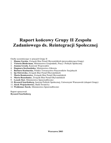 Raport końcowy Grupy II Zespołu Zadaniowego ds. Reintegracji