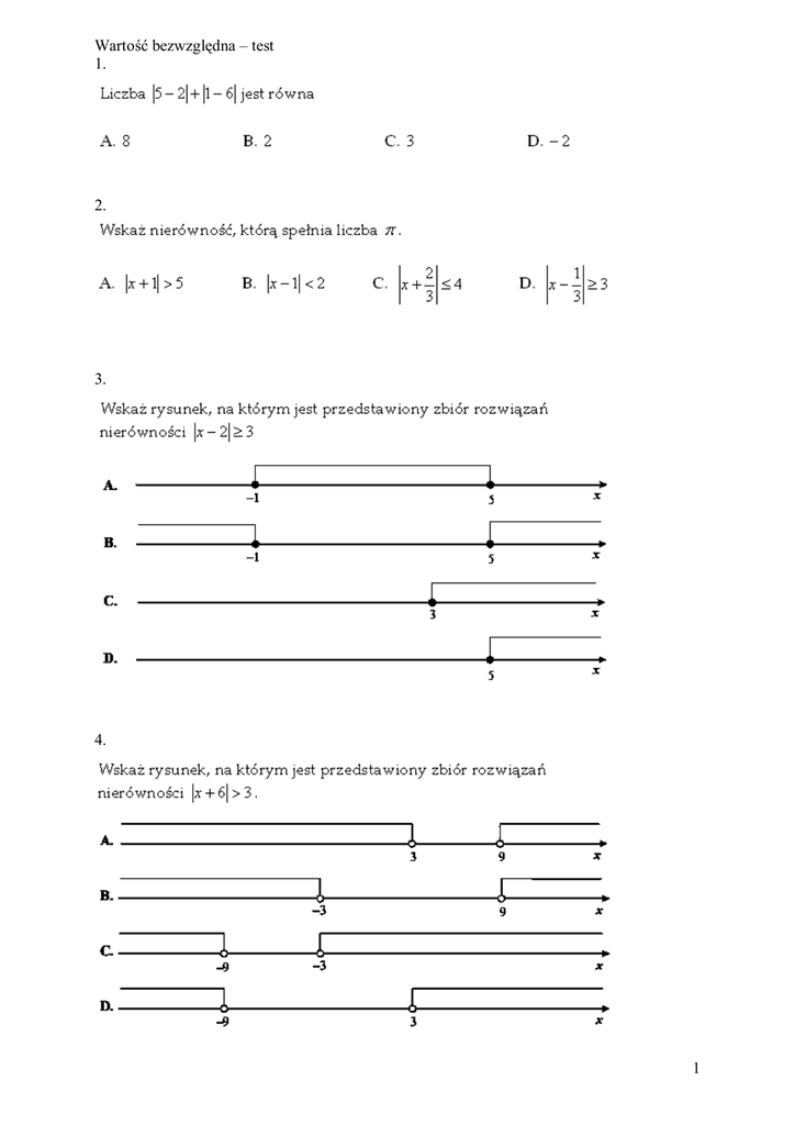 1 Wartość bezwzględna – test 1. 2. 3. 4.