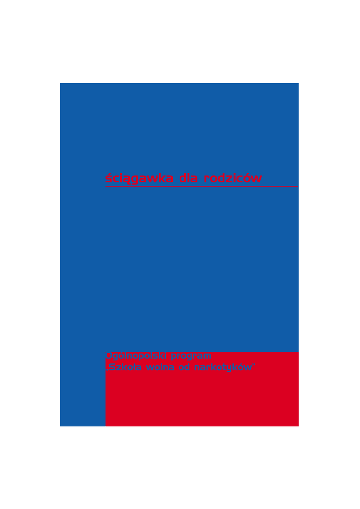 Êciàgawka dla rodziców Ogólnopolski program „Szko∏a wolna od narkotyków” Âciàgawka dla Rodziców, czyli co nale˝y wiedzieç i co nale˝y zrobiç, aby chroniç dziecko przed narkotykami Narkotyki sta∏y si´ dost´pne wsz´dzie: w szkole, na ulicy, w dyskotece. WczeÊniej czy póêniej kontakt z nimi mo˝e si´ przydarzyç ka˝demu dziecku, tak˝e Twojemu. Stanowià realne niebezpieczeƒstwo, nawet jeÊli dziÊ myÊlisz sobie: „Mój syn, moja córka nigdy tego nie zrobi...”. PowinieneÊ jednak zdawaç sobie spraw´, ˝e wiele zale˝y od Ciebie. To w∏aÊnie Ty mo˝esz mieç ogromny wp∏yw na to, czy Twoje dziecko si´gnie po Êrodki odurzajàce. Co powinieneÊ wiedzieç? Cz´sto dzieci wiedzà na temat narkotyków du˝o wi´cej od nas, rodziców. Przewa˝nie jednak ich informacje wynikajà z mitów krà˝àcych wÊród m∏odzie˝y i nie sà prawdziwe. JeÊli chcesz byç dla dziecka autorytetem i partnerem podczas rozmów na ten temat, powinieneÊ: • wykazaç si´ rzetelnà wiedzà na temat Êrodków odurzajàcych, aby umieç obaliç fa∏szywe przekonania, jakie Twoje dziecko posiada na temat narkotyków; • nauczyç si´ rozpoznawaç sygna∏y ostrzegawcze, wskazujàce na za˝ywanie Êrodków odurzajàcych. Podstawowe informacje dotyczàce tego, jak zapobiegaç uzale˝nieniom, jak rozpoznaç, ˝e dziecko si´gn´∏o po narkotyki i co zrobiç w takiej sytuacji, znajdziesz w naszej „Êciàgawce”. Swojà wiedzà pos∏u˝y Ci tak˝e specjalista w poradni uzale˝nieƒ lub szkolny psycholog, a sporo ksià˝ek z tego zakresu proponujà ksi´garnie i biblioteki. „Szko∏a wolna od narkotyków” Êciàgawka dla rodziców Warto przeczytaç: • Ruth Maxwell „Dzieci, Alkohol, Narkotyki” • Dimoff, S. Carper „Jak rozpoznaç, czy dziecko si´ga po narkotyki” • Marzena Pasek „Narkotyki? Na pewno nie moje dziecko” Co mo˝esz zrobiç, aby zapobiegaç? Dbaj o dobry kontakt z dzieckiem. PowinieneÊ jak najcz´Êciej: • okazywaç dziecku ciep∏o i czu∏oÊç; • rozmawiaç, nie unikaç trudnych tematów; • s∏uchaç uwa˝nie i nie lekcewa˝yç jego problemów, s∏u˝yç radà; • nie oceniaç i nie porównywaç z innymi; • nie wyÊmiewaç, nie krytykowaç, nie stawiaç zbyt wysokich wymagaƒ; • doceniaç starania i chwaliç post´py; • pomagaç uwierzyç w siebie, uczyç podstawowych wartoÊci; • poznawaç przyjació∏ swojego dziecka; • zawsze wiedzieç, gdzie jest i co robi Twoje dziecko; • wyra˝aç zdecydowanie negatywnà postaw´ wobec narkotyków. Sygna∏y ostrzegawcze, czyli na co nale˝y zwróciç uwag´ Pierwsze próby z narkotykami dziecko zwykle starannie ukrywa przed doros∏ymi. Wszelkie niepokojàce zmiany b´dzie Ci na pewno ∏atwiej zauwa˝yç, jeÊli masz z dzieckiem dobry kontakt, wiele ze sobà rozmawiacie i du˝o czasu sp´dzacie razem. Pami´taj jednak, ˝e niektóre zachowania i postawy mogà mieç inne przyczyny, takie jak k∏opoty szkolne lub rodzinne, zranione uczucia, niepowodzenia w kontaktach z rówieÊnikami i wiele „Szko∏a wolna od narkotyków” Êciàgawka dla rodziców innych, które nale˝y traktowaç równie powa˝nie i staraç si´ pomóc dziecku je rozwiàzaç. Zmiany w zachowaniu • nag∏e zmiany nastroju i aktywnoÊci, okresy wzmo˝onego o˝ywienia przeplatane ze zm´czeniem i ospa∏oÊcià; • nadmierny apetyt lub brak apetytu; • spadek zainteresowaƒ ulubionymi zaj´ciami; • pogorszenie si´ ocen, wagary, konflikty z nauczycielami; • izolowanie si´ od innych domowników, zamykanie si´ w pokoju, niech´ç do rozmów; • cz´ste wietrzenie pokoju, u˝ywanie kadzide∏ek i odÊwie˝aczy powietrza; • wypowiedzi zawierajàce pozytywny stosunek do narkotyków; • bunt, ∏amanie ustalonych zasad, napady z∏oÊci, agresja; • nag∏a zmiana grona przyjació∏ na innych, zw∏aszcza na starszych od siebie; • niewyt∏umaczone spóênienia, póêne powroty lub te˝ noce poza domem; • k∏amstwa, wynoszenie wartoÊciowych przedmiotów z domu; • tajemnicze, krótkie rozmowy telefoniczne, nag∏e wyjÊcia. Zmiany w wyglàdzie zewn´trznym • nowy styl ubierania si´; • spadek ci´˝aru cia∏a, cz´ste przezi´bienia, przewlek∏y katar, krwawienie z nosa, bóle ró˝nych cz´Êci cia∏a, zaburzenia pami´ci oraz toku myÊlenia; „Szko∏a wolna od narkotyków” Êciàgawka dla rodziców • przekrwione oczy, zw´˝one lub rozszerzone êrenice; • be∏kotliwa, niewyraêna mowa; • s∏odkawa woƒ oddechu, w∏osów, ubrania, zapach alkoholu, nikotyny, chemikaliów; • Êlady po uk∏uciach, Êlady krwi na bieliênie, „g´sia skórka”; • brak zainteresowania swoim wyglàdem i nieprzestrzeganie zasad higieny. Narkotyki lub przybory do ich u˝ywania • fifki, fajki, bibu∏ki papierosowe; • ma∏e foliowe torebeczki z proszkiem, tabletkami, kryszta∏kami lub suszem; • kawa∏ki opalonej folii aluminiowej; • bia∏e lub kolorowe pastylki z wyt∏oczonymi wzorami; • leki bez recept; • tuby, s∏oiki, foliowe torby z klejem; • ig∏y, strzykawki. Im g∏´bsza faza uzale˝nienia, tym objawy choroby sà bardziej widoczne, wynikajà z utraty kontroli nad braniem Êrodków odurzajàcych. Wzrasta ryzyko przedawkowania i Êmierci. Co zrobiç, gdy dziecko ma ju˝ za sobà pierwszy kontakt z narkotykami? Mo˝e si´ zdarzyç, ˝e mimo Twoich najlepszych staraƒ, uwagi i znajomoÊci problemu, Twoje dziecko si´gnie po narkotyki. „Szko∏a wolna od narkotyków” Êciàgawka dla rodziców Nie mo˝esz wtedy: • wpadaç w panik´ i przeprowadzaç zasadniczych rozmów z dzieckiem, kiedy jest ono pod wp∏ywem Êrodka odurzajàcego; • udawaç, ˝e to nieprawda, nie wierzyç w przedstawione fakty, bezgranicznie ufaç dziecku; • usprawiedliwiaç dziecka, szukajàc winy w sobie lub np. z∏ym towarzystwie; • wierzyç zapewnieniom dziecka, ˝e ma kontrol´ nad narkotykami i ˝e samo sobie poradzi z tym problemem; • nadmiernie ochraniaç dziecka przed konsekwe