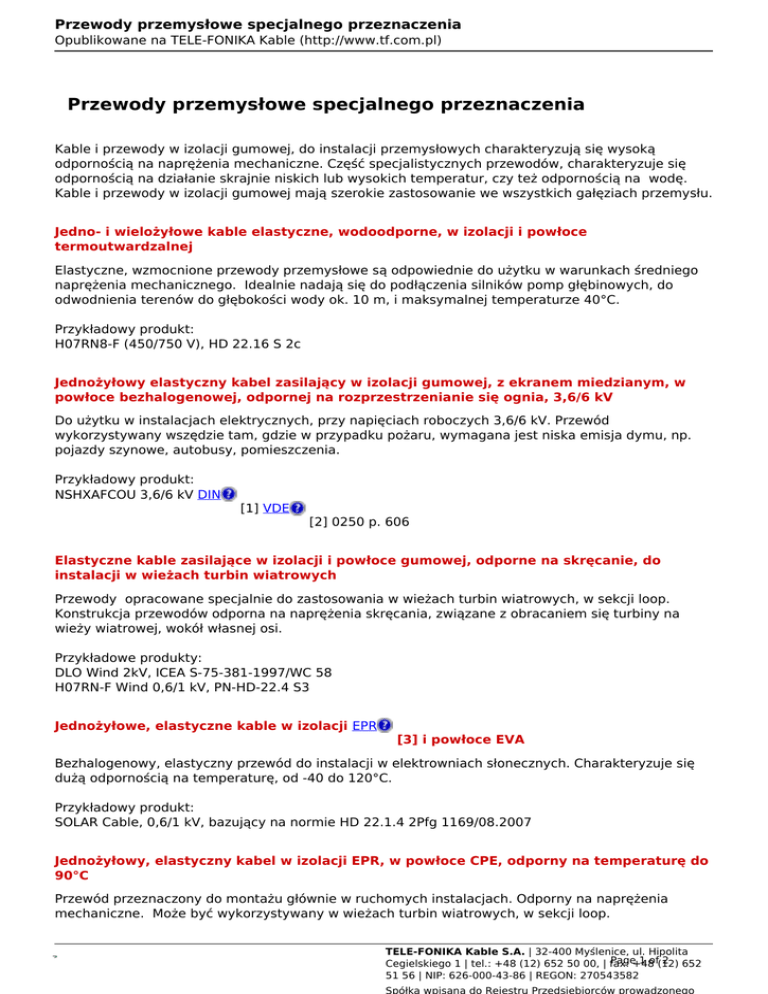 Przewody przemysłowe specjalnego przeznaczenia - TELE