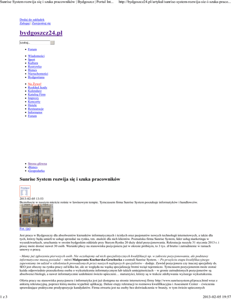 Sunrise System rozwija się i szuka pracowników | Bydgoszcz | Portal