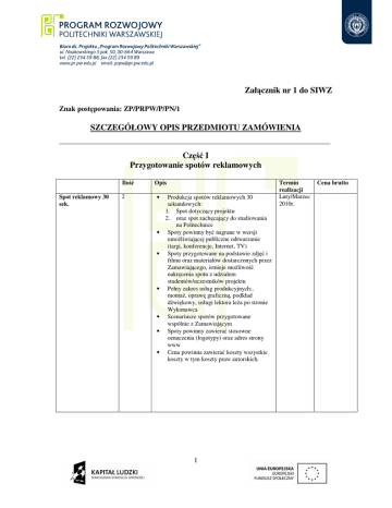 Załącznik nr 1 do SIWZ SZCZEGÓŁOWY OPIS PRZEDMIOTU