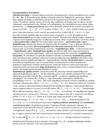 kwoty czyli (1) r KZ0 K1K0K0 . Z (1) wynika, że (2) Z K 0 r , (tzn. odsetki Z dają się wyrazić