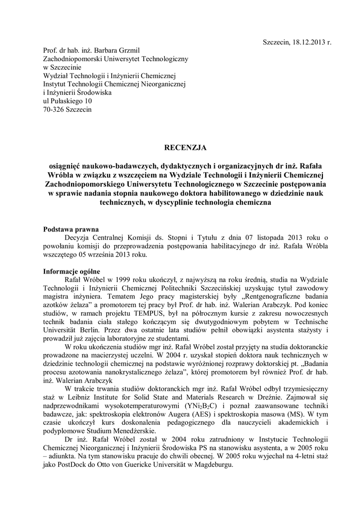 Recenzja 2 - Wydział Technologii i Inżynierii Chemicznej ZUT