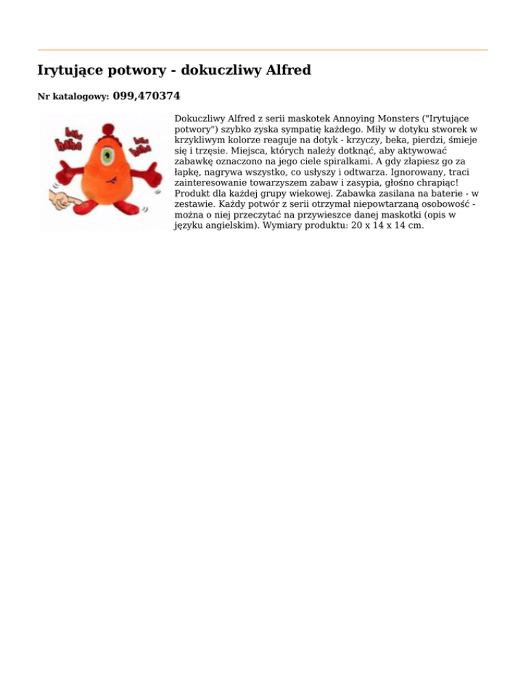 Dokuczliwy Alfred z serii maskotek Annoying Monsters ("Irytujące