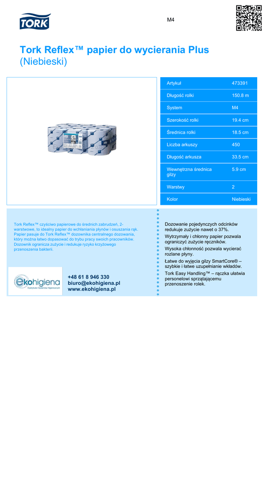 M4 Tork Reflex™ papier do wycierania Plus (Niebieski) Eko Higiena Sp. z o.o. Tork Reflex™ czyściwo papierowe do średnich zabrudzeń, 2warstwowe, to idealny papier do wchłaniania płynów i osuszania rąk. Papier pasuje do Tork Reflex™ dozownika centralnego dozowania, który można łatwo dopasować do trybu pracy swoich pracowników. Dozownik ogranicza zużycie i redukuje ryzyko krzyżowego przenoszenia bakterii. +48 61 8 946 330 [email protected] www.ekohigiena.pl Artykuł 473391 Długość rolki 150.8 m System M4 Szerokość rolki 19.4 cm Średnica rolki 18.5 cm Liczba arkuszy 450 Długość arkusza 33.5 cm Wewnętrzna średnica gilzy 5.9 cm Warstwy 2 Kolor Niebieski Dozowanie pojedynczych odcinków redukuje zużycie nawet o 37%. Wytrzymały i chłonny papier pozwala ograniczyć zużycie ręczników. Wysoka chłonność pozwala wycierać rozlane płyny. Łatwe do wyjęcia gilzy SmartCore® – szybkie i łatwe uzupełnianie wkładów. Tork Easy Handling™ – rączka ułatwia personelowi sprzątającemu przenoszenie rolek. M4 Informacje o opakowaniu Opakowanie pojedyncze Opakowanie transportowe Paleta EAN 3133200062763 3133200062770 3133200062787 Sztuki 1 6 144 Opakowania pojedyncze - 6 144 Wysokość 194 mm 194 mm 1314 mm Szerokość 185 mm 370 mm 800 mm Długość 185 mm 555 mm 1200 mm Objętość 6.6 dm3 39.8 dm3 1 m3 Waga netto 1170 g 7 kg 168.46 kg Waga brutto 1192 g 7.2 kg 173.11 kg Rodzaj opakowania Plastic Plastic - Wybierz dozownik 473133 473140 473126 Alternatywne produkty Dane środowiskowe Zawartość Materiał Środki chemiczne Produkt jest wykonany z Pierwotnej masy celulozowej Włókien pochodzących z recyklingu Środków chemicznych Opakowanie jest wykonane z papieru lub tworzywa sztucznego. Włókna pierwotne i papier odzyskany W procesie wytwarzania tissue wykorzystywane są zarówno włókna pierwotne, jak i papier odzyskany. Masę włóknistą wybiera się na podstawie wymagań specyficznych dla produktu, a także jej dostępności, dzięki czemu sposób wykorzystania masy charakteryzuje się największą efektywnością. Korzyści środowiskowe oraz opłacalność wykorzystania papieru odzyskanego jako surowca zależą od jego dostępności, odległości, na jaką trzeba go przewieźć, oraz jakości usuniętego materiału. Recykling papieru to wydajna metoda wykorzystania zasobów, ponieważ pozwala na wielokrotne wykorzystanie włókien drzewnych. Aby uzyskać bezpieczne i higieniczne produkty, duży nacisk kładzie się na jakość i czystość włókien odzyskanych, które to parametry uwzględnia się na każdym etapie łańcucha (zbiórka, sortowanie, transport, przechowywanie, użycie). Do produkcji papieru odzyskanego można wykorzystać usunięte gazety, czasopisma oraz odpady biurowe. Papier rozpuszcza się w wodzie, myje i poddaje obróbce za pomocą środków chemicznych, przeprowadzanej w wysokiej temperaturze, po czym papier poddawany jest filtracji w celu usunięcia zanieczyszczeń. Pierwotne włókna celulozowe wytwarza się z drewna miękkiego lub twardego. Drewno poddawane jest procesom chemicznym i/lub mechanicznym, w ramach których oddziela się włókna celulozowe oraz usuwa ligninę i resztę pozostałości. Bielenie to proces czyszczenia włókien, którego celem jest uzyskanie jasnej masy włóknistej, a także określonego stopnia czystości włókien, który jest konieczny do spełnienia wymogów obowiązujących dla produktów higienicznych oraz niekiedy do sprostania wytycznym dotyczącym bezpiecznego kontaktu z żywnością. Obecnie wykorzystuje się różne metody bielenia: ECF (bez udziału chloru cząsteczkowego), w ramach której wykorzystuje się dwutlenek chloru) oraz TCF (całkowicie wolne od związków chloru), w ramach której wykorzystuje się ozon, tlen i nadtlenek wodoru. Do wybielania odzyskanej masy włóknistej wykorzystuje się środki bielące, które nie zawierają chloru (nadtlenek wodoru i ditionin sodu). 473242 473472 473480 Certyfikaty produktu Kontakt Eko Higiena Sp. z o.o. ul. Gipsowa 13, Sierosław 62-080 Tarnowo Podgórne Tel./Fax: +48 61 8 946 330 Wszystkie środki chemiczne (pomocnicze środki technologiczne oraz dodatki) ocenia się z punktu widzenia bezpieczeństwa i higieny pracy oraz ochrony środowiska, a także bezpieczeństwa produktów. Następujące dodatki pozwalają nam kontrolować wydajność produktów: • Środki zwiększające wytrzymałość w stanie mokrym (w przypadku czyściw i ręczników do rąk) • Środki zwiększające wytrzymałość w stanie suchym (stosowane przy mechanicznej obróbce masy włóknistej do wytwarzania mocnych produktów, takich jak czyściwa) • W przypadku papierów kolorowych dodaje się barwniki i utrwalacze (w celu zachowania idealnej trwałości koloru) • W przypadku produktów z nadrukami stosuje się farby drukarskie (pigmenty z nośnikami i utrwalaczami) • W przypadku produktów wielowarstwowych korzystamy często z kleju wodorozpuszczalnego, który pozwala zachować integralność produktu Większość naszych zakładów nie stosuje jako dodatków rozjaśniaczy optycznych, które można jednak często znaleźć w papierze odzyskanym, ponieważ są one stosowane w papierze drukowym. W przypadku produktów AfH nie korzystamy ze zmiękczaczy. Wysoką jakość produktów zapewnia się dzięki systemom zarządzania jakością i higieną, które są wdrożone w procesy produkcyjne, magazynowe i transportowe. W celu zachowania stabilności procesu oraz jakości produktów proces produkcji papieru wspomagany jest poprzez zastosowanie następujących środków chemicznych / pomocniczych środków technologicznych: ◦ środki przeciwpieniące (środki powierzchniowo czynne i dyspergatory) ◦ środki do kontrolowania poziomu pH (wodorotlenek sodu i kwas siarkowy) ◦ środki pomocnicze wspomagające retencję (środki chemiczne, które pomagają tworzyć skupiska małych włókien w celu uniknięcia ich strat) ◦ powłoki chemiczne (dzięki któr