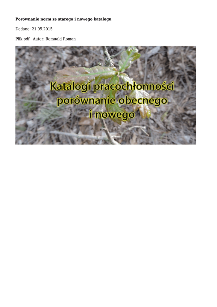 Porównanie norm ze starego i nowego katalogu Dodano: 21.05.2015 Plik pdf Autor: Romuald Roman Plik pdf Autor: Romuald Roman Komentarze (0) Nie dodano jeszcze żadnego komentarza.