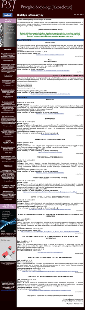 Grudzień, 2015 - Qualitative Sociology Review