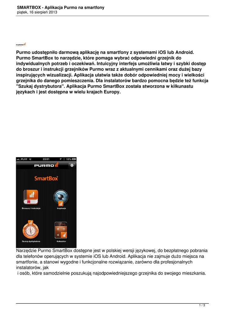 SMARTBOX - Aplikacja Purmo na smartfony