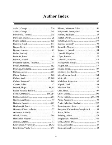 Author Index Anders, George........................................... 356 Anders, George J. ...................................... 348 Babczynski, Tomasz................................... 315 Babeshko, Eugene........................................ 25 Bagrij, Łukasz............................................ 135 Bańczyk, Karol........................................... 144 Barger, Pavol.............................................. 152 Bessam, Ammar........................................... 61 Bialas, Andrzej............................................... 3 Bluemke, Ilona............................................. 69 Bolotov, Anatoli......................................... 261 Bouabana-Tebibel, Thouraya....................... 11 Bouali, Mohamed....................................... 152 Bourahla, Mustapha.................................... 229 Burtzev, Alexej........................................... 261 Caban, Dariusz........................................... 160 Cichon, Jacek........................................ 17, 168 Cichon, Krzysztof....................................... 168 Czubak, Adam.............................................. 17 Dworak, Hugo........................................ 84, 91 Fariña, Antonio da Silva............................. 237 Fechner, Bernhard.............................. 245, 254 Frolov, Alexander....................................... 261 García, Ana Belen........................................ 77 Gashkov, Sergei.......................................... 261 Gluchowski, Pawel....................................... 33 Gonzalez-Calero, Alberto............................. 77 Gorbenko, Anatoliy...................................... 25 Górnik, Urszula.......................................... 304 Hernández, Vicente...................................... 77 Jasinski, Andrzej.......................................... 17 Kharchenko, Vyacheslav........................ 25, 42 Kharitonov, Vasily Y. ............................... 271 Kimour, Mohamed Tahar............................. 61 Kobylanski, Przemyslaw............................ 168 Komari, Iraj Elyasi....................................... 25 Körber, Oliver............................................ 254 Kotulski, Leszek......................................... 279 Koutras, Vasilis P. ....................................... 99 Kowalski, Marcin....................................... 324 Krawczyk, Henryk...................................... 144 Lipinski, Zbigniew....................................... 50 López, Lourdes............................................. 77 Lukowicz, Miroslaw................................... 315 Maciejewski, Henryk.................................. 332 Magott, Jan................................................. 315 Majzik, István............................................. 107 Martínez, José Fernán................................... 77 Mazurkiewicz, Jacek.................................. 364 Melit, Ali...................................................... 61 Michalska, Katarzyna................................. 135 Mlynek, Jacek............................................. 184 Nikodem, Jan.............................................. 176 Oláh, János................................................. 107 Orlov, Dmitry............................................. 290 Piech, Henryk..................................... 296, 304 Platis, Agapios N. ........................................ 99 Prieto, Sebastián Sánchez........................... 237 Rembiszewski, Artur.................................... 69 Salagaras, Christoforos-Panagiotis S. ......... 99 Schon, Walter............................................. 152 Sedziwy, Adam.......................................... 279 Siergiejczyk, Mirosław............................... 340 Silva, Antonio Da......................................... 77 Siora, Alexander........................................... 25 Siora, Alexandr............................................. 42 373 Author Index Sklyar, Vladimir........................................... 42 Sugier, Jaroslaw.......................................... 348 Szlachcic, Ewa............................................ 184 Szymczyk, Miroslaw.................................. 192 Toporkov, Victor V. .................................. 202 Toporkova, Anna........................................ 202 Torres, Alvaro............................................ 356 Tselishchev, Alexey................................... 202 Tylman, Wojciech...................................... 210 Walkowiak, Tomasz........................... 364, 218 Wilkosz, Kazimierz.................................... 324 Woda, Marek.............................................. 135 Worwa, Kazimierz...................................... 115 Yemelyanov, Dmitry.................................. 202 Zhebet, Sergei............................................. 261 Zuberek, Wlodek M. ................................. 123 374