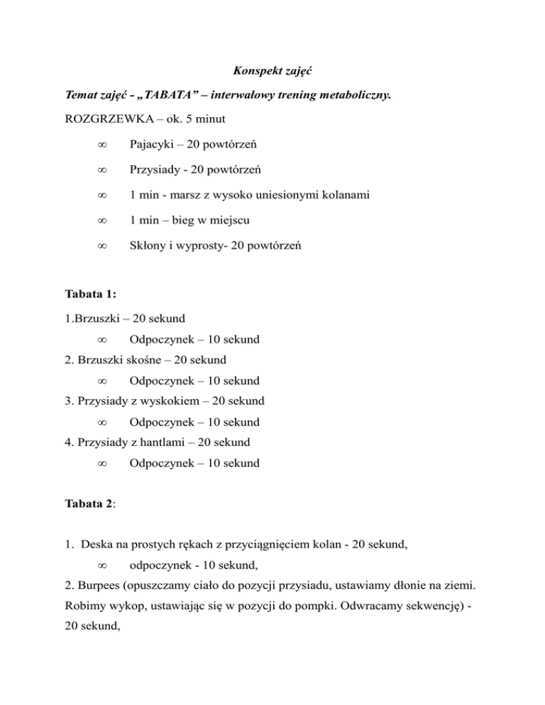 Konspekt zajęć "TABATA” – interwałowy trening metaboliczny