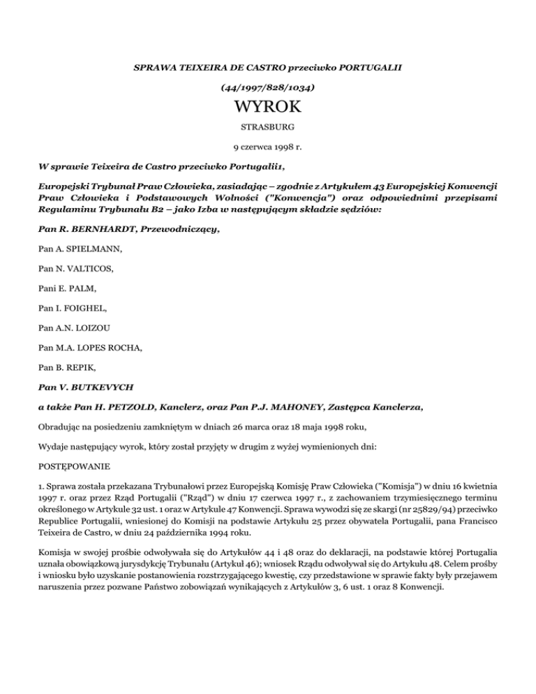 SPRAWA TEIXEIRA DE CASTRO przeciwko PORTUGALII (44/1997