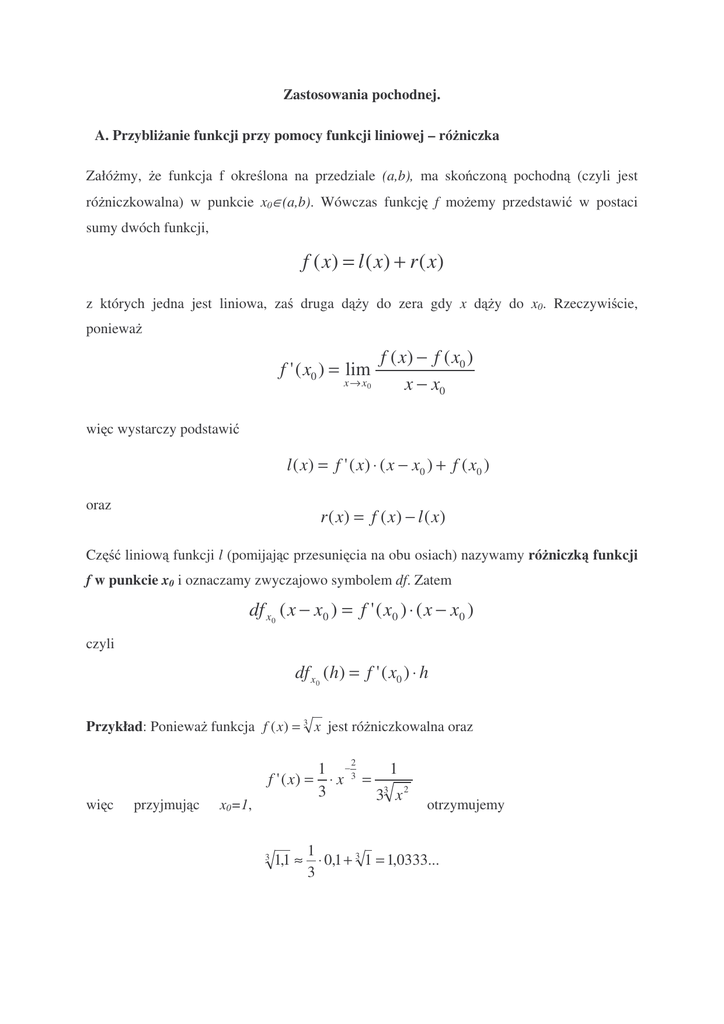 Zastosowania pochodnej